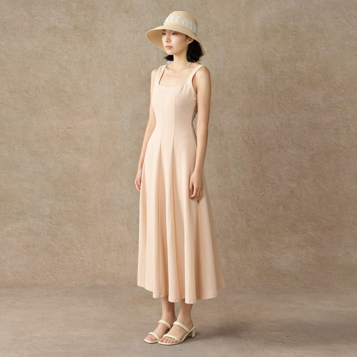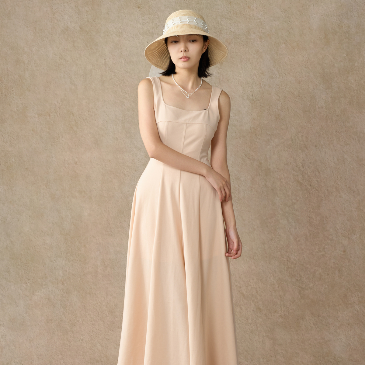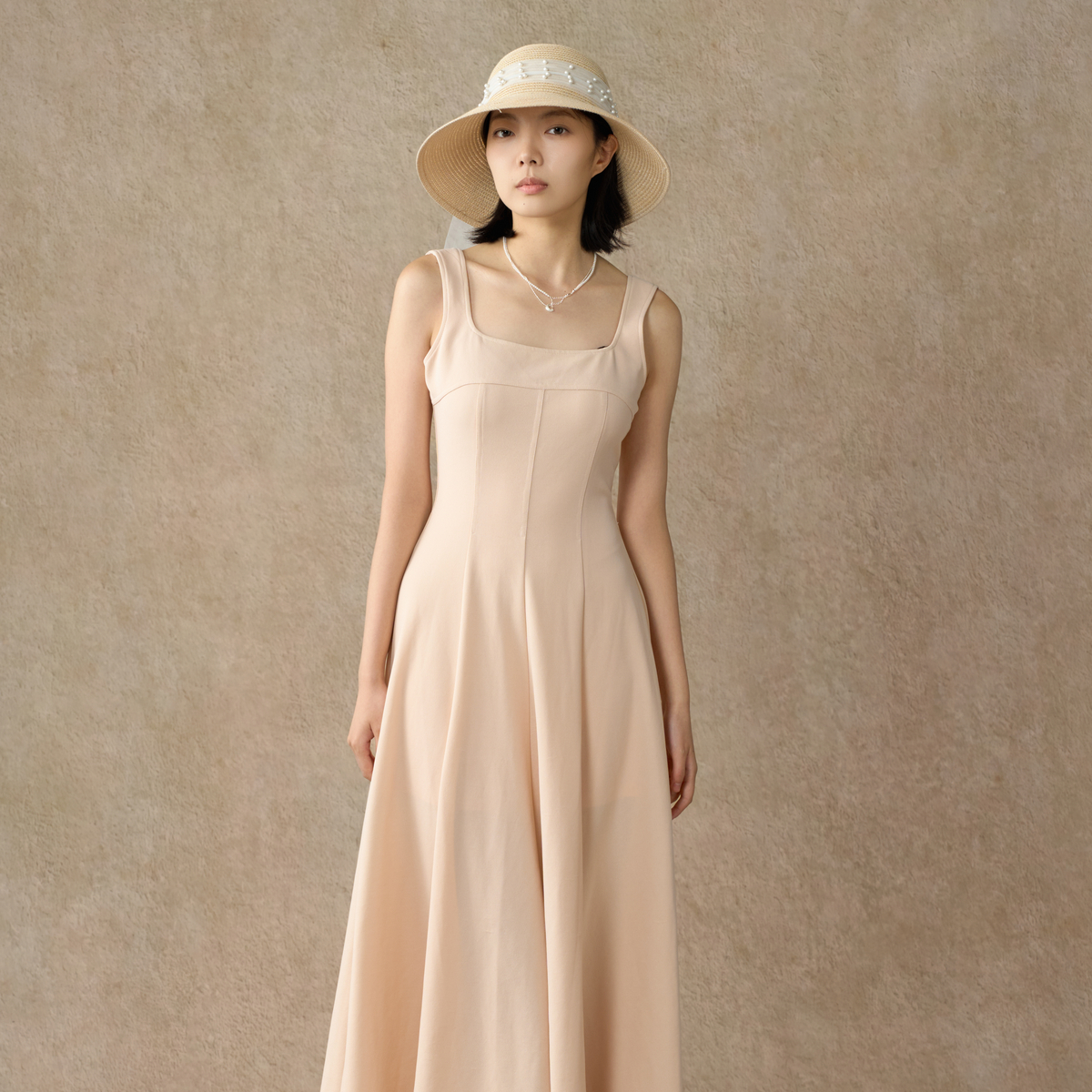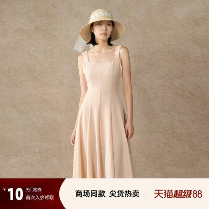 西町村屋简约气质吊带连衣裙女装夏季新款百搭纯色裙子XAAB10331