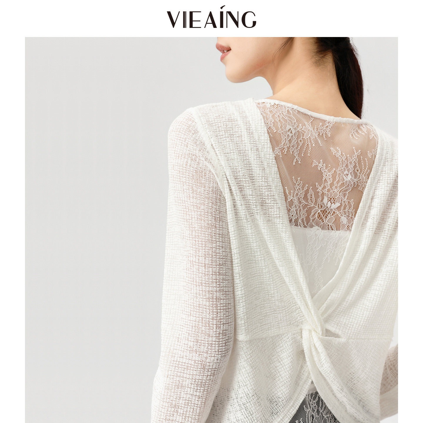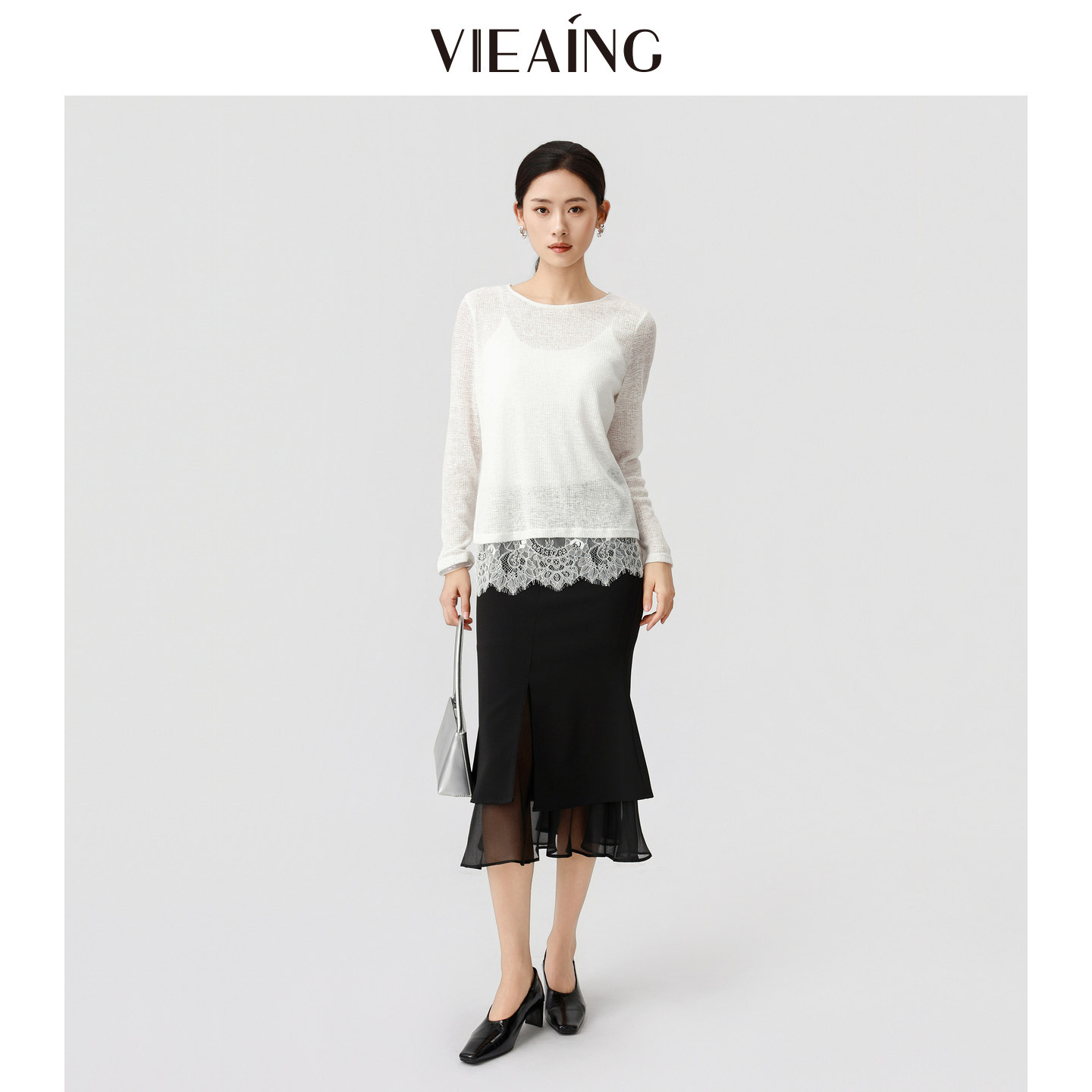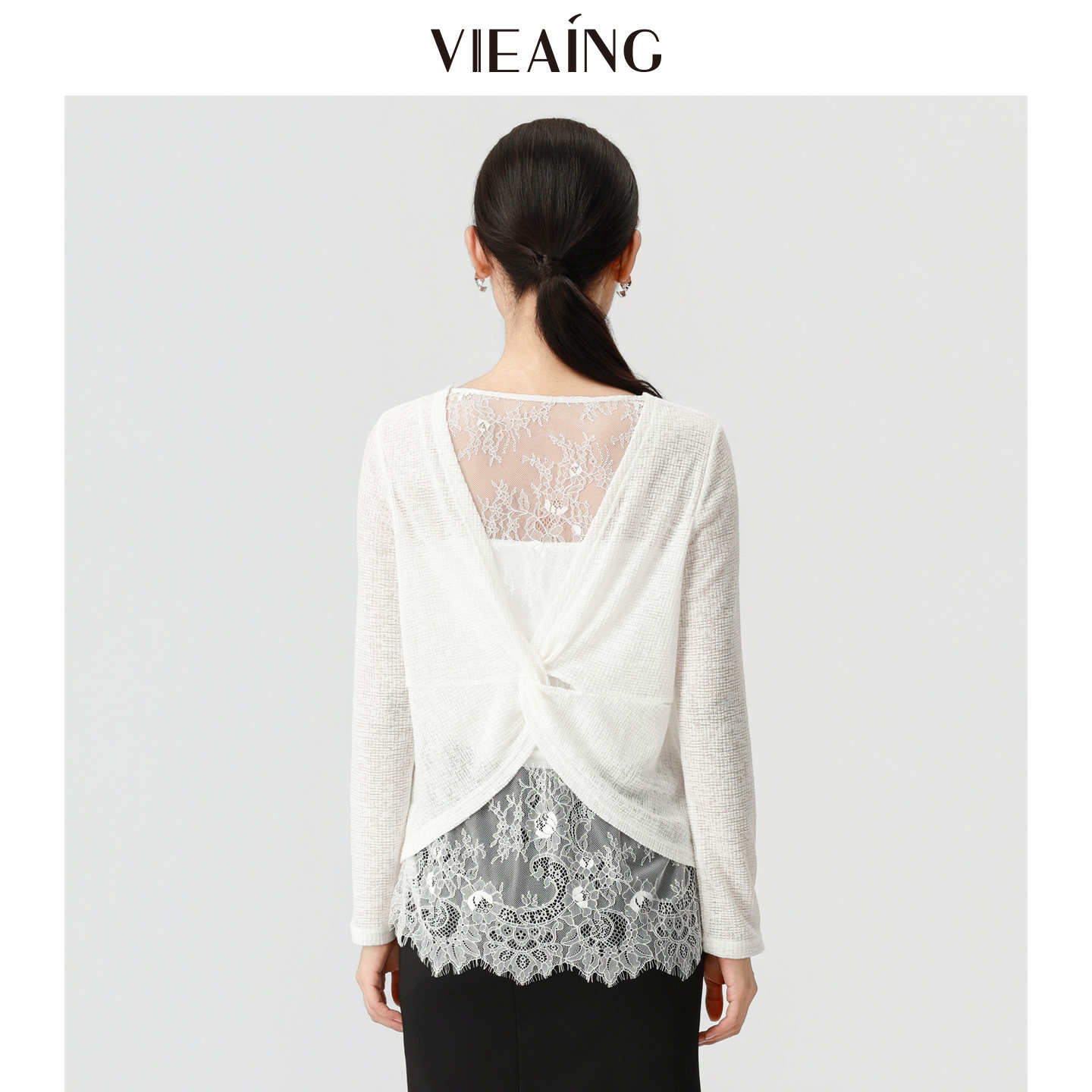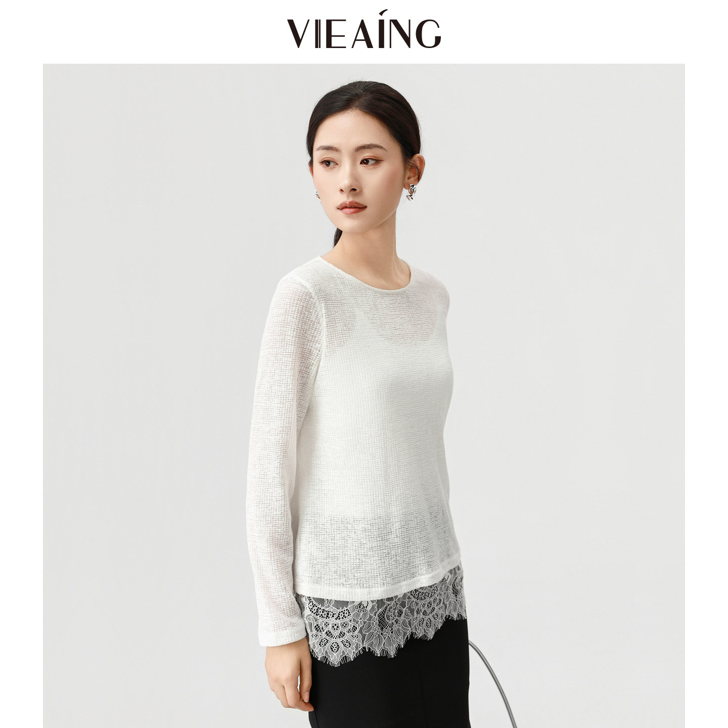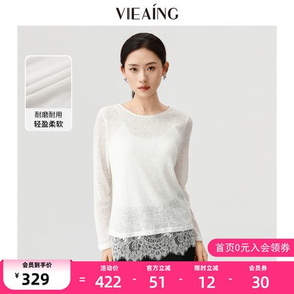 VIEA.ING薇迎商场同款白色衬衫女2026春季新款罩衫蕾丝花边上衣