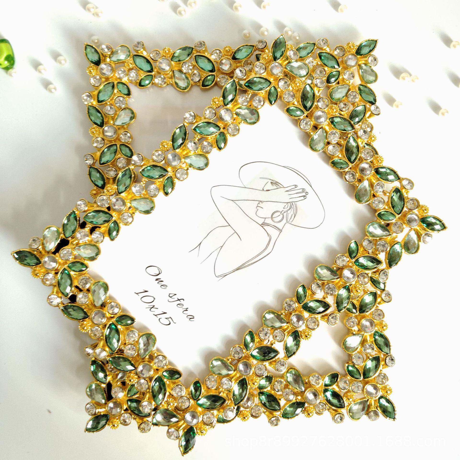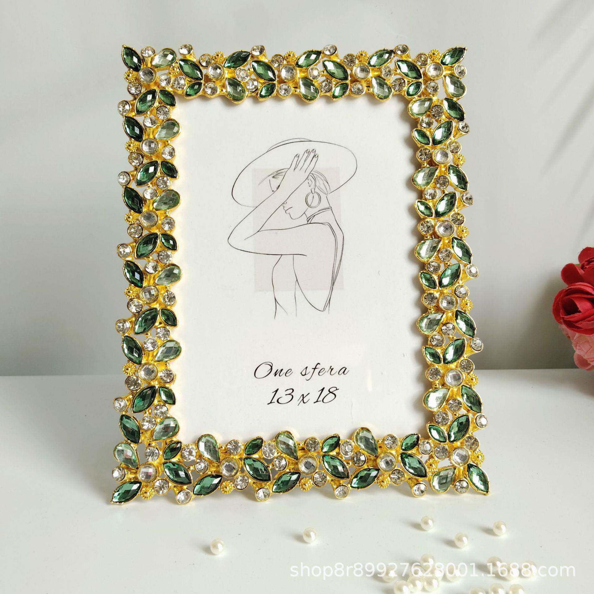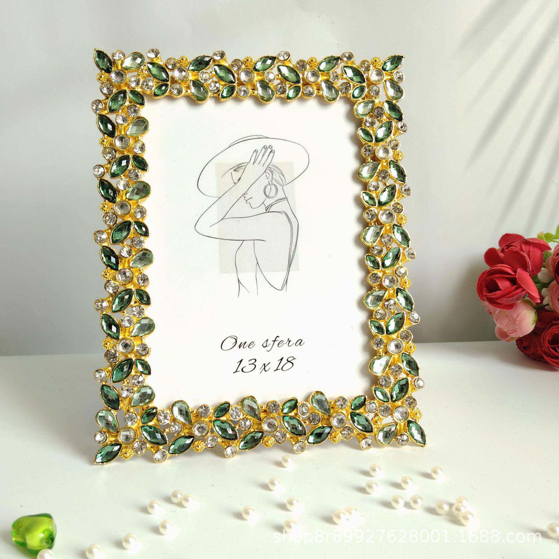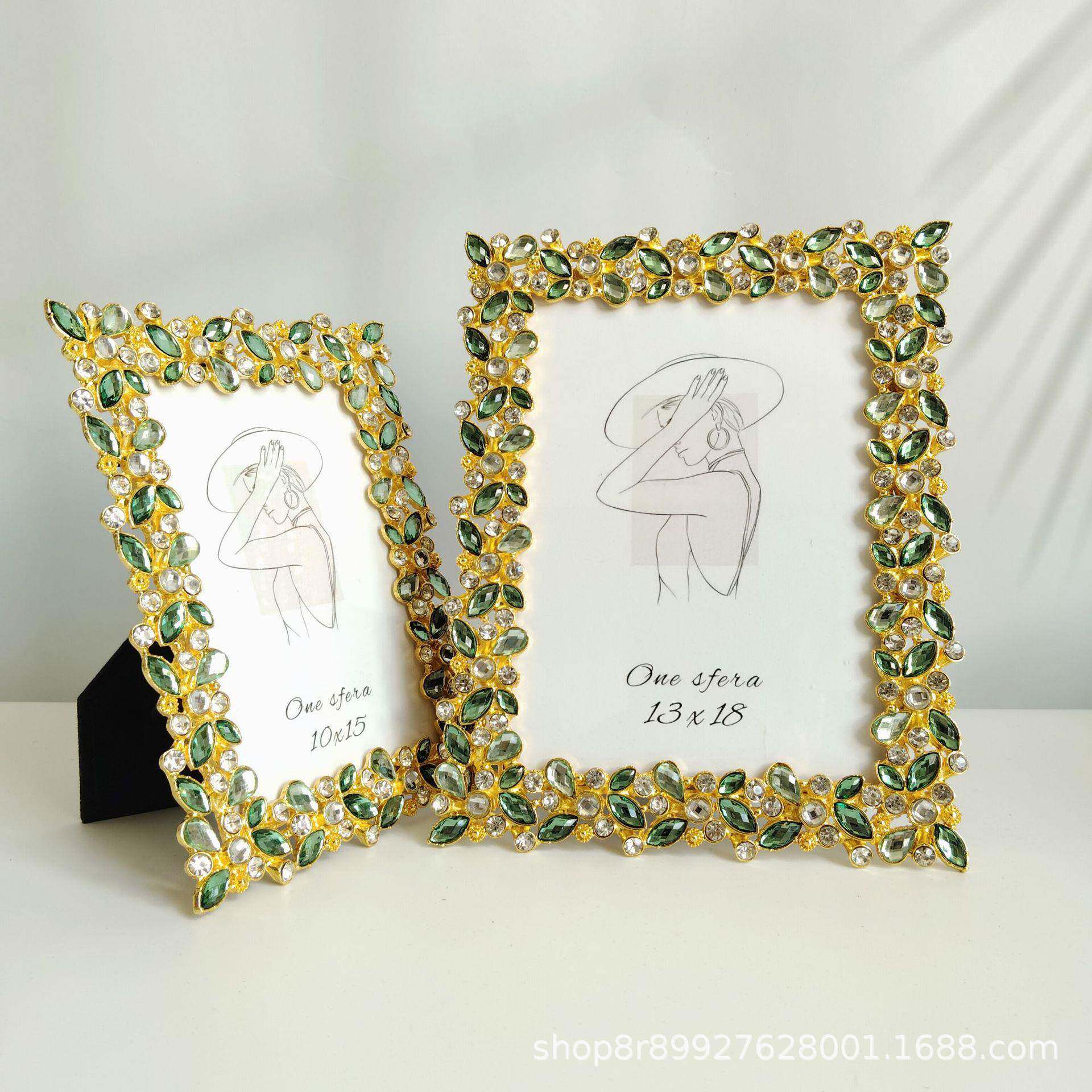镶嵌翡翠绿宝石简约金属时尚相框摆台,简约相框家庭摆件装饰