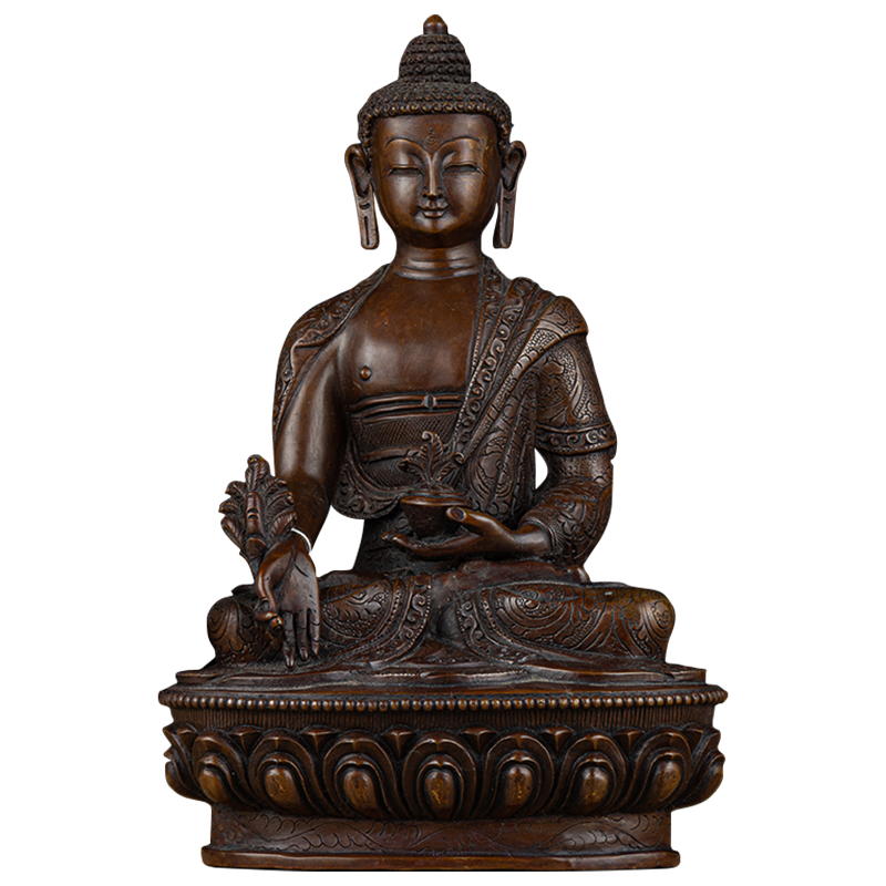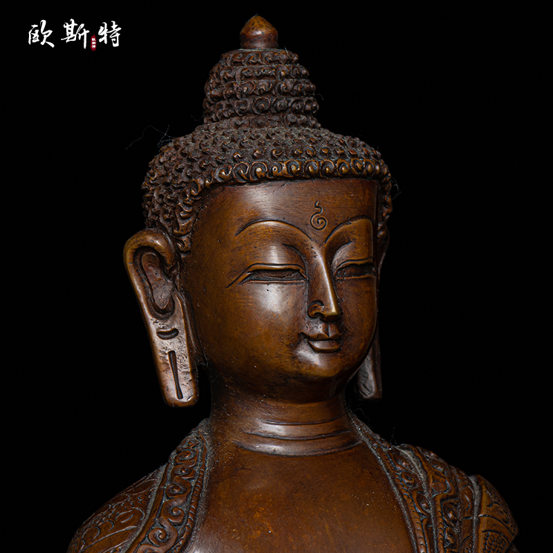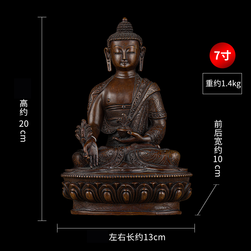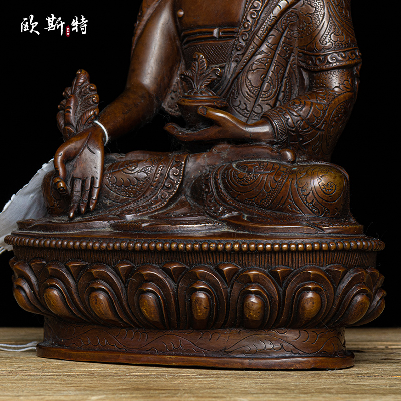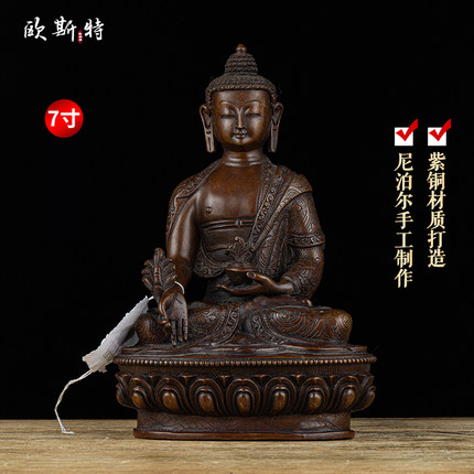 欧斯特 药师佛 家居饰品 尼泊尔7寸家用铜像手工雕花紫铜中式摆件