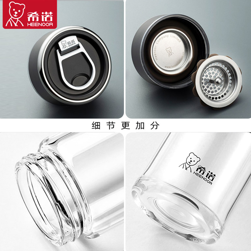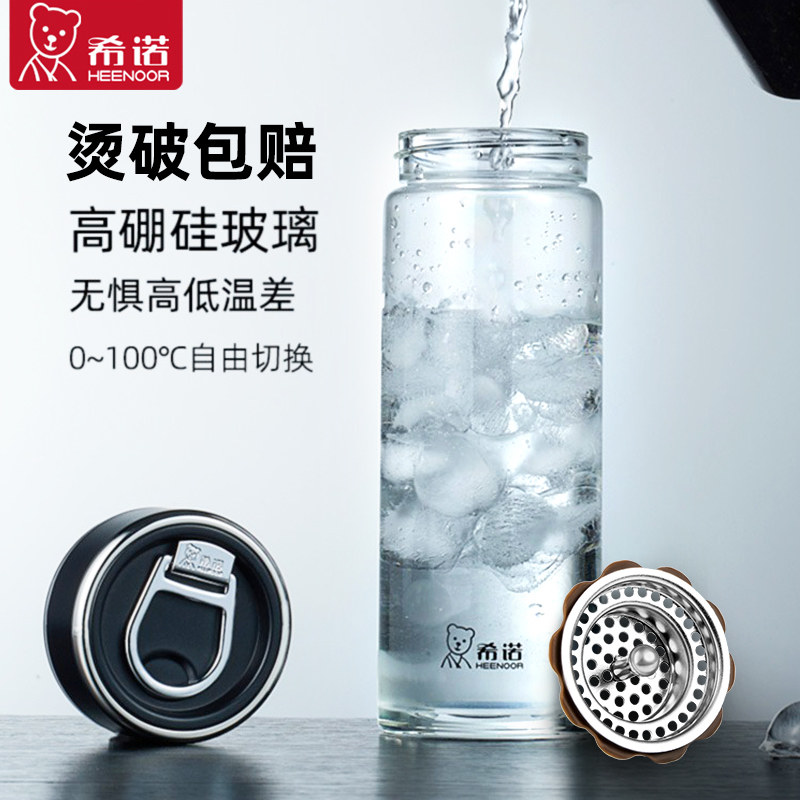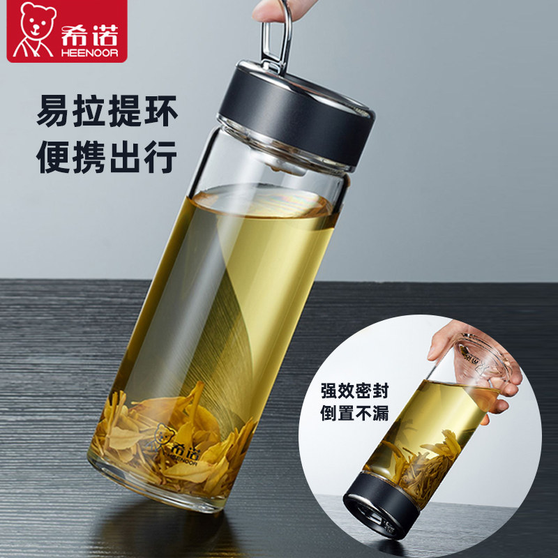 希诺单层玻璃杯男女士时尚便携提环大容量耐热居家出行茶水杯