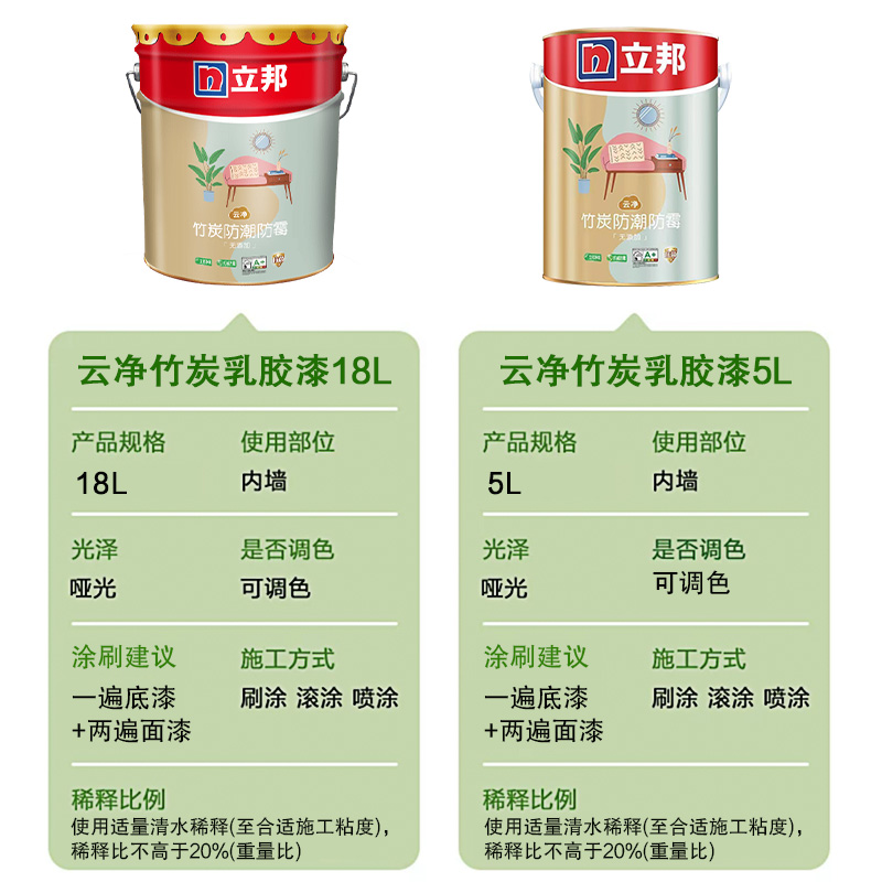 立邦竹炭防潮防霉内墙乳胶漆室内净味120二合一墙面漆涂料油漆