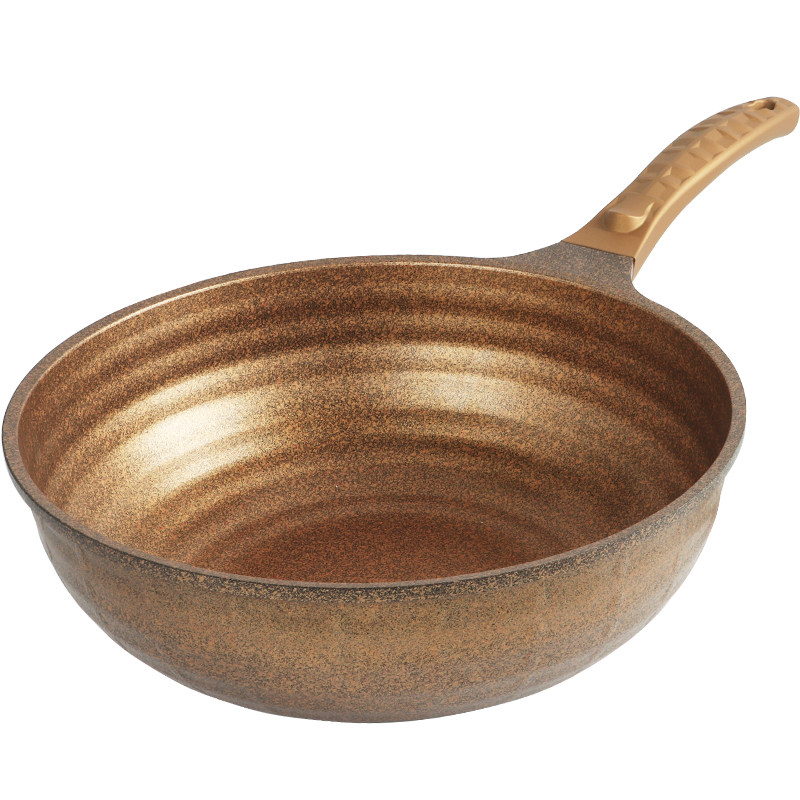 韩国麦饭石不粘锅家用炒菜锅土豪金不沾锅电磁炉锅具原装进口炒锅