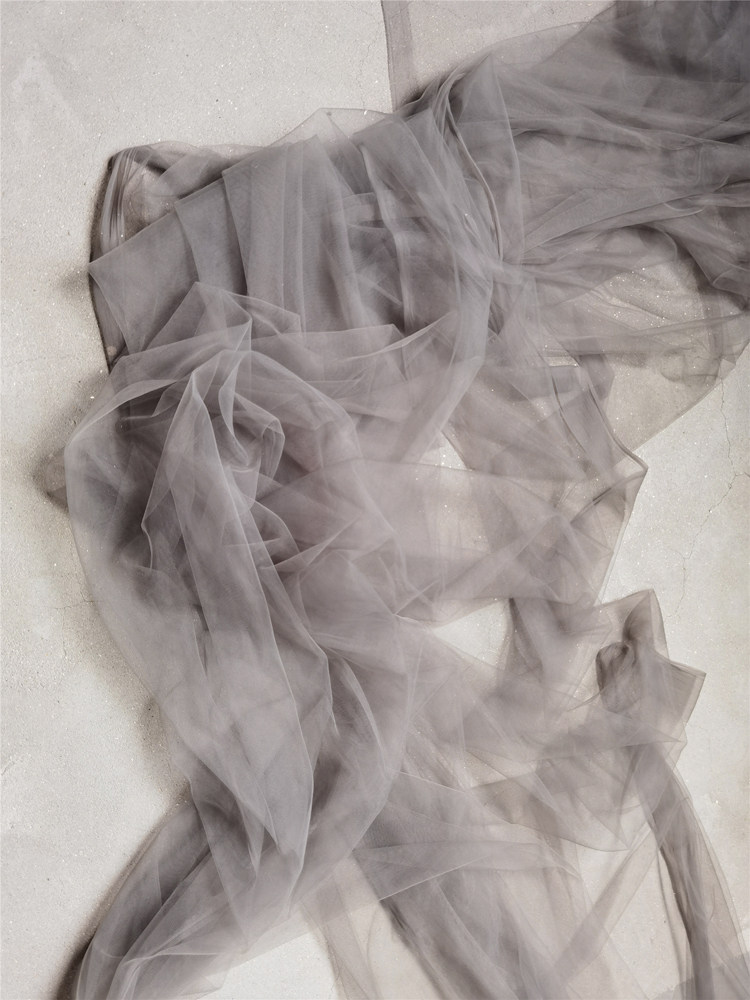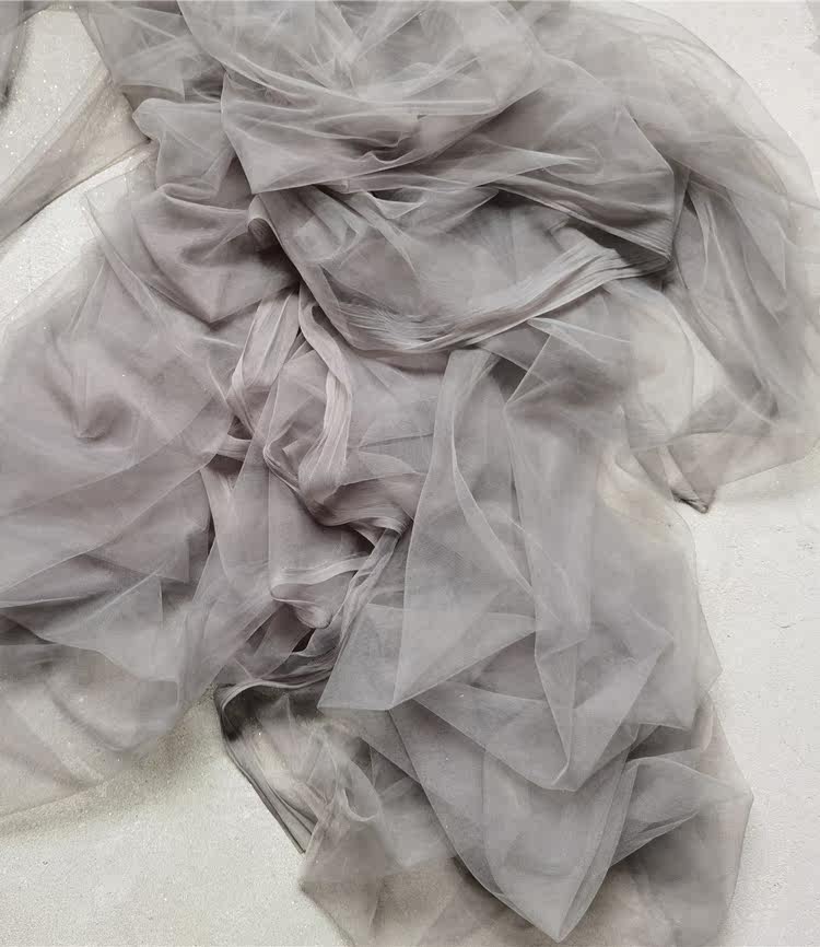 设计师进口寂灭灰网纱 创意肌理造型飘逸面料 diy毕业设计师布