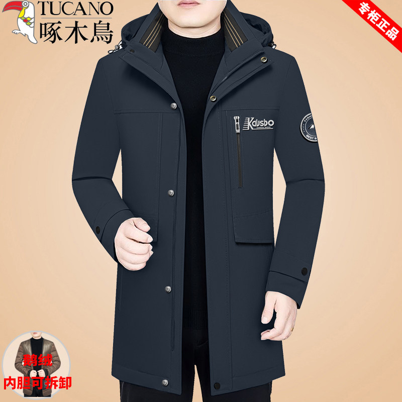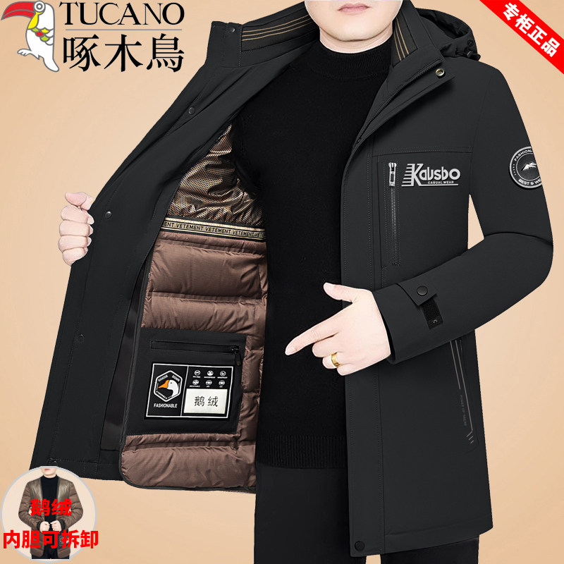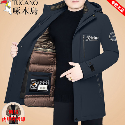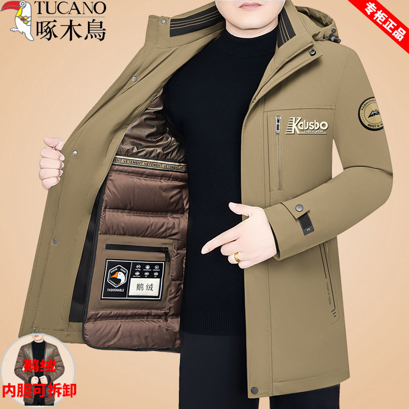 啄木鸟冬季新款羽绒服中年男士加厚鹅绒服可脱卸内胆防寒保暖外套