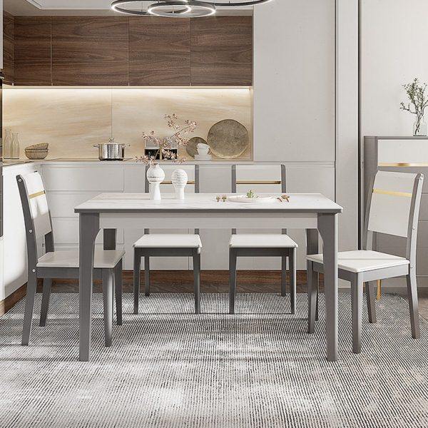 双虎岩板餐桌现代简约轻奢家用小户型长方形实木桌子客厅家用306