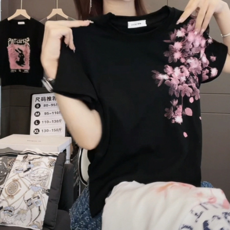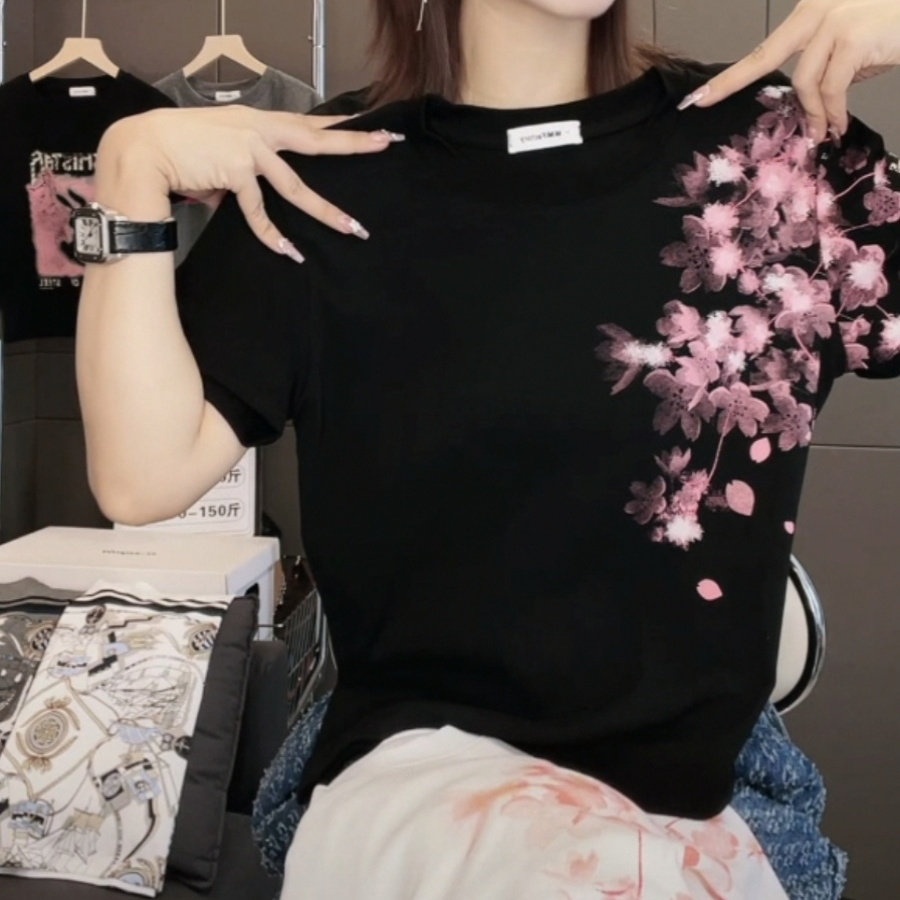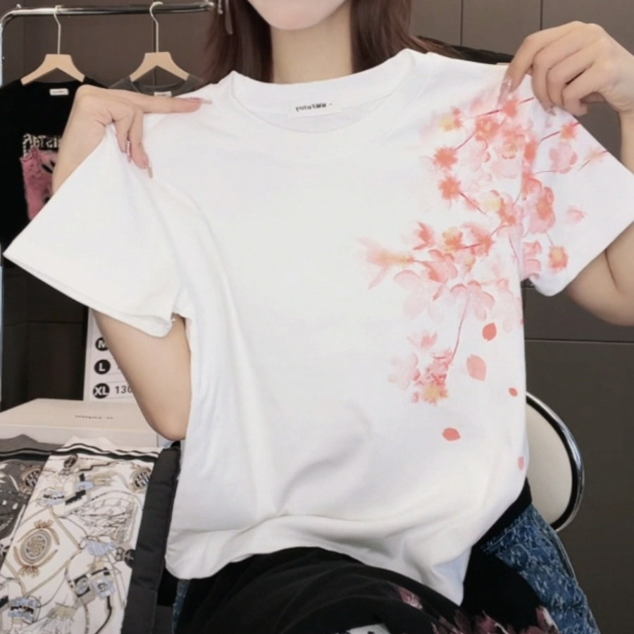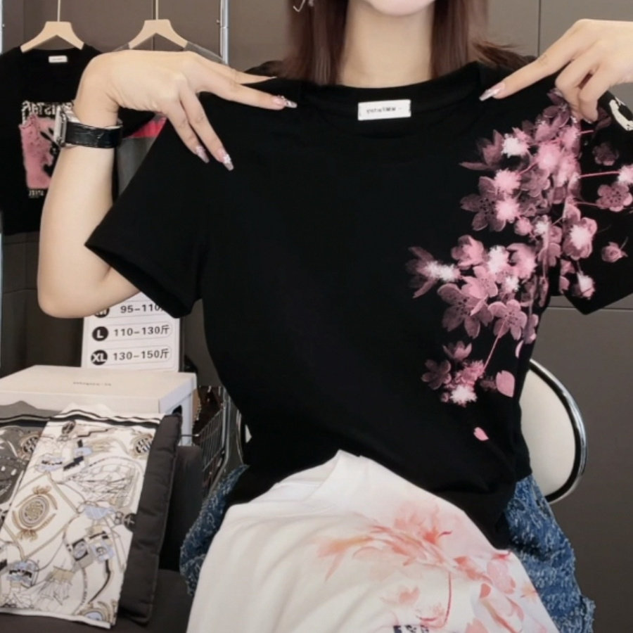 2026夏季新款梅花印花短袖T恤女修身显瘦时尚休闲百搭