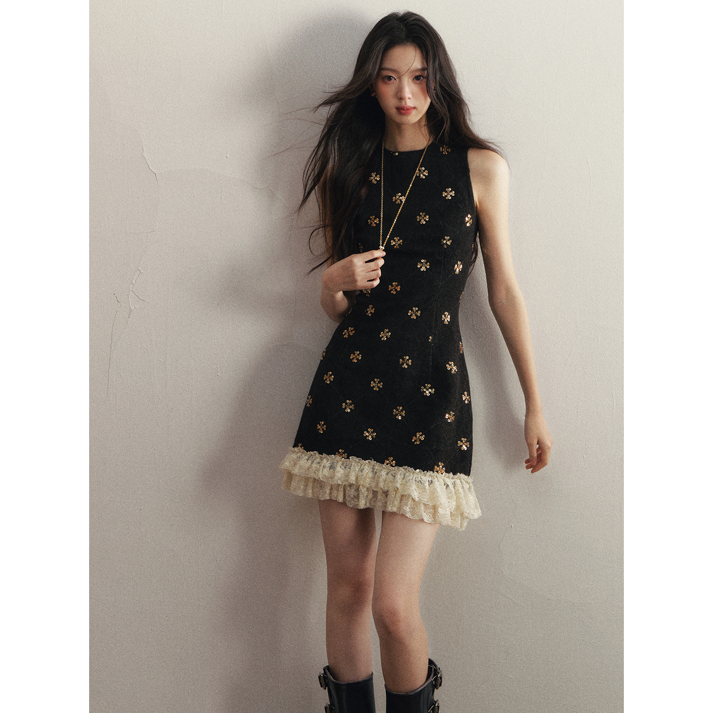 1P STUDIO 金色亮片绣花毛呢小香风套装女冬季短外套背心裙两件套