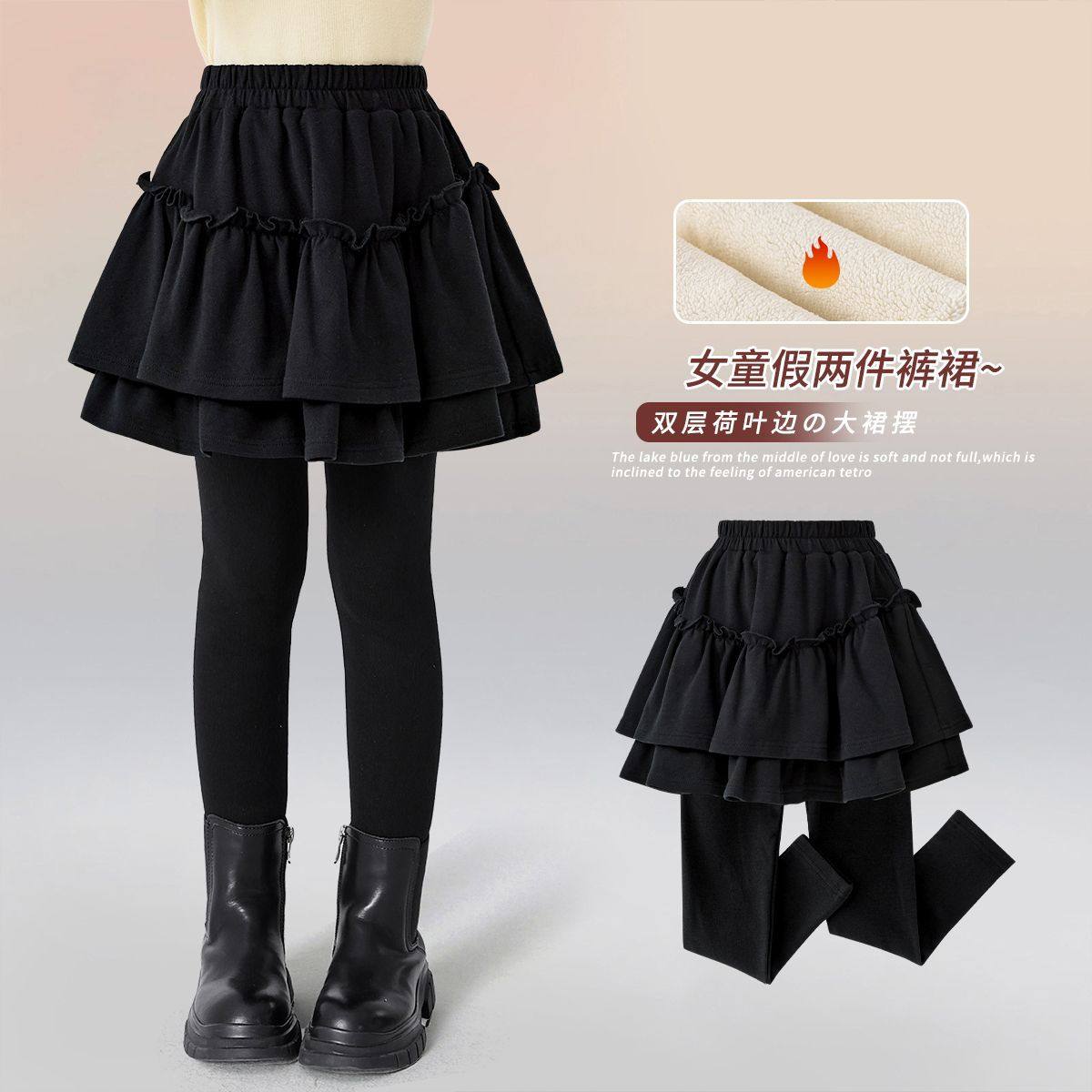 女童加绒假两件打底裤裙2026秋冬装新款外穿中大童一体绒加厚裤裙
