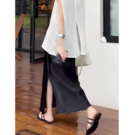 黑色醋酸半身裙女2025流行新款高腰简约时尚气质鱼尾裙侧开叉长裙