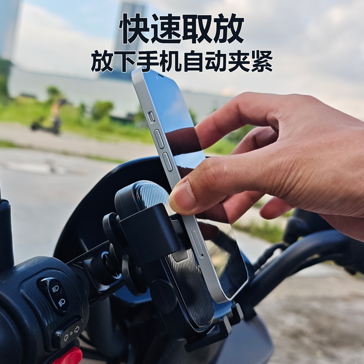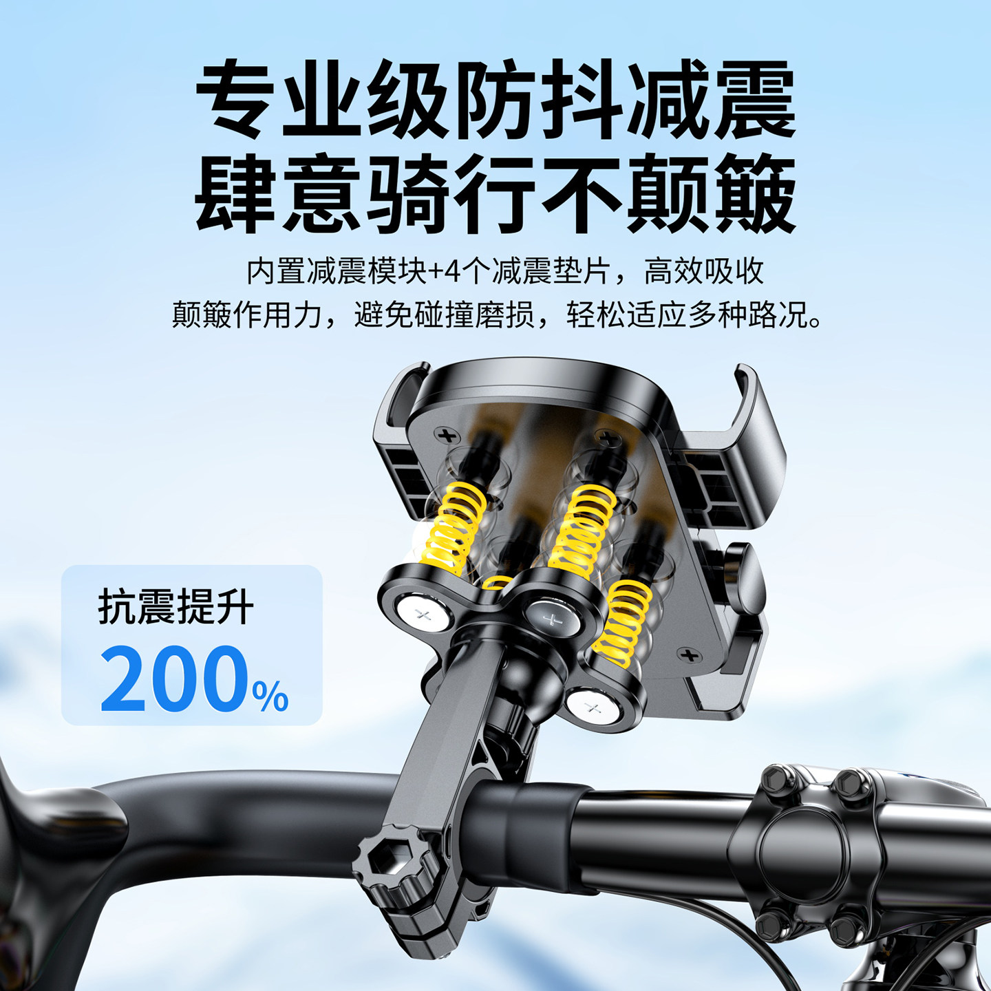 电动车手机支架外卖骑手防抖减震一秒取放横杆后视镜款自行车导航