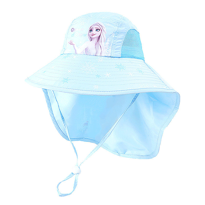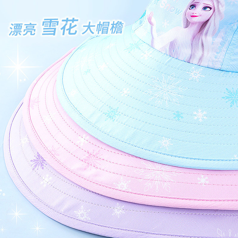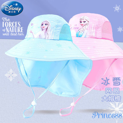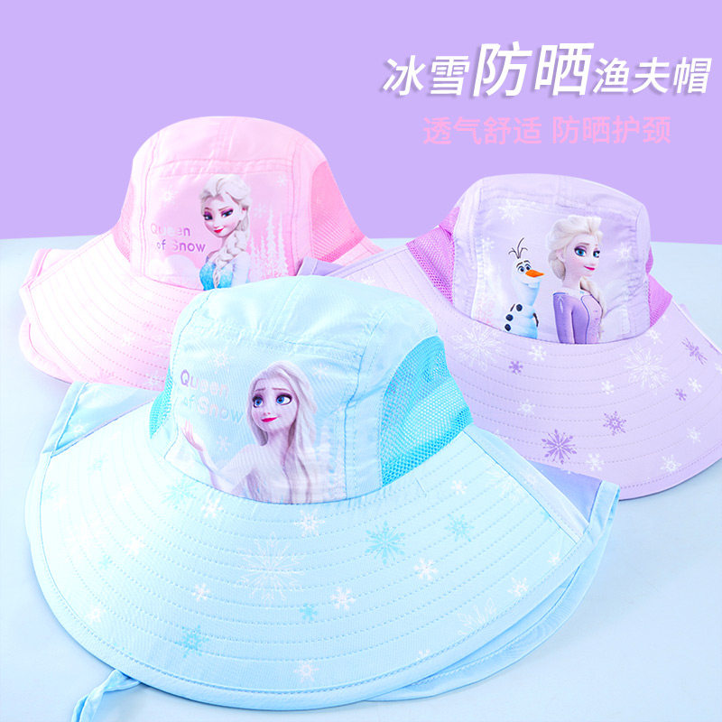 迪士尼女童遮阳帽夏季大帽檐儿童防晒帽卡通爱莎公主渔夫帽盆帽子