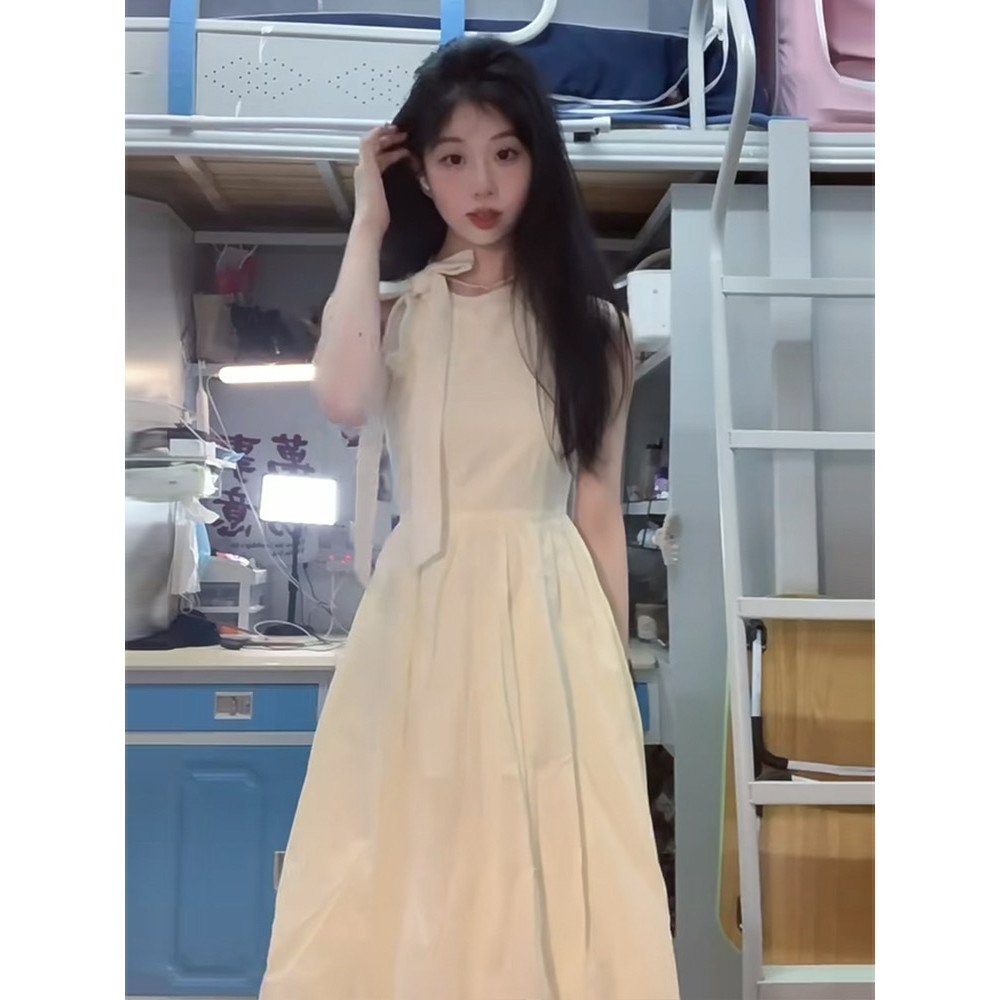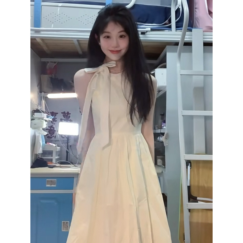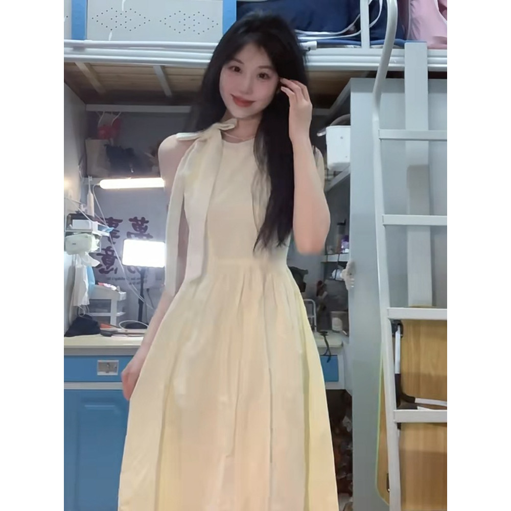法式浪漫挂脖连衣裙子女夏季海边度假风名媛吊带无袖沙滩仙气长裙