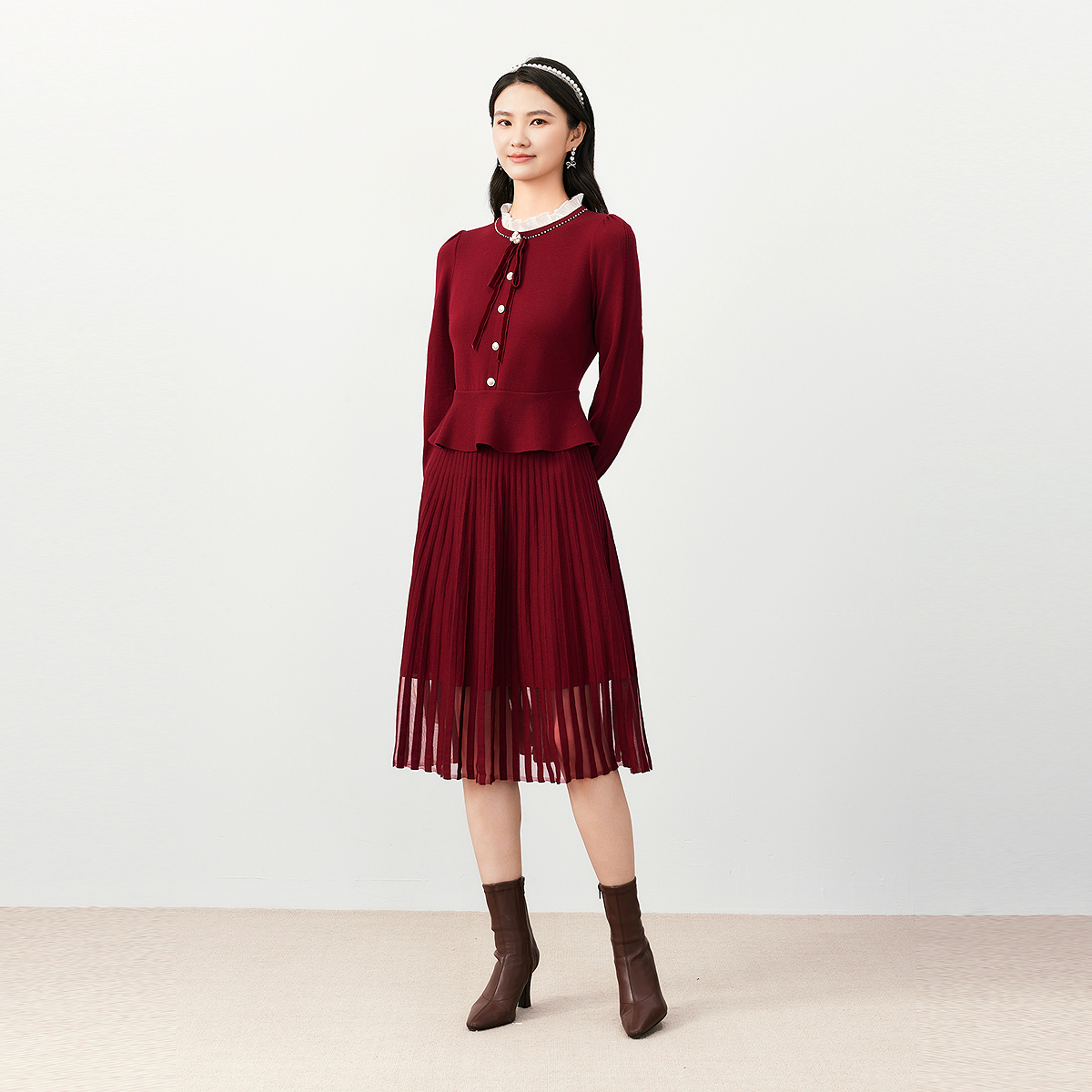 珂莱蒂尔koradior冬款假两件优雅淑女浪漫拼接连衣裙女羊毛裙装