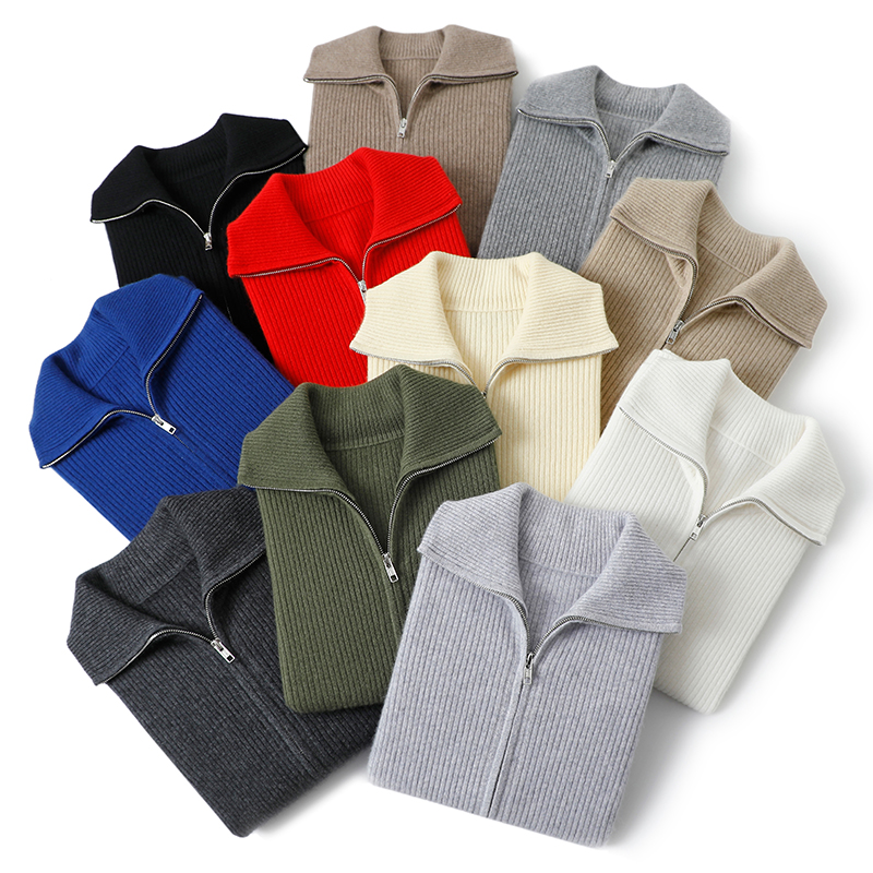 简约气质哇!双头拉链100%纯山羊绒开衫女毛衣针织打底开衫秋冬厚