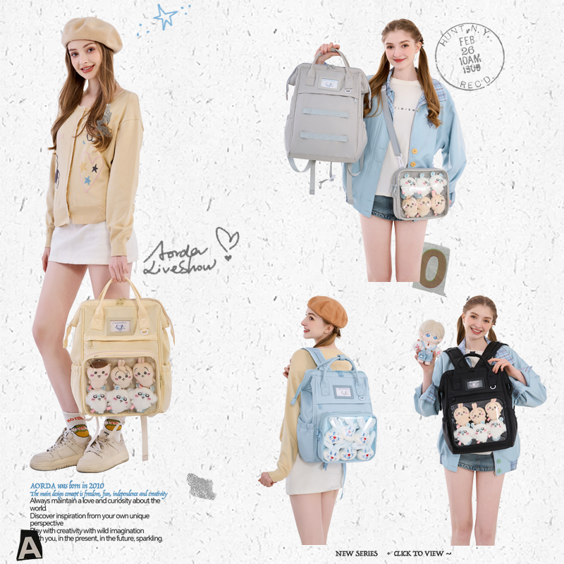 AORDA 痛包双肩背包书包初中女生大容量二次元日常吧唧娃包出游痛