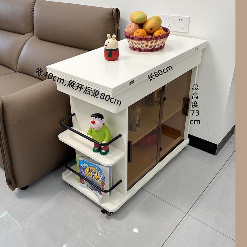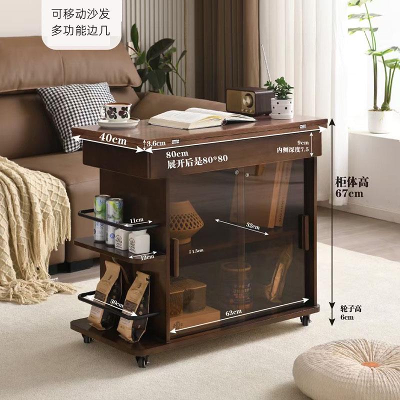 客厅沙发侧边柜小餐桌茶几多功能储物柜手推可移动阳台柜全实木柜
