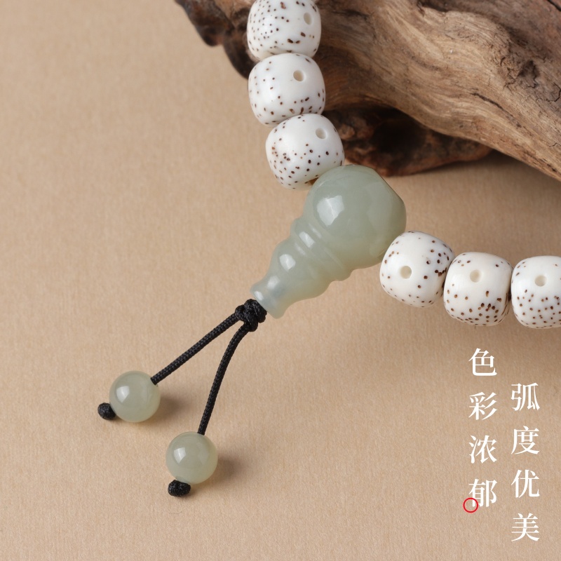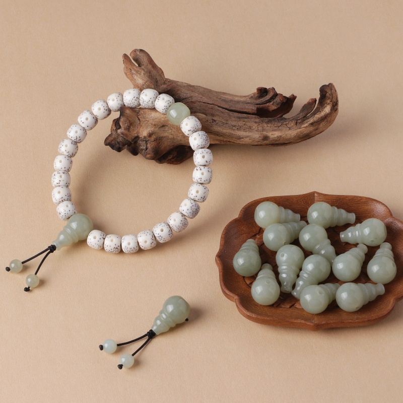 天然和田玉三通文玩配饰青白玉一体佛头配珠星月金刚菩提手串配件