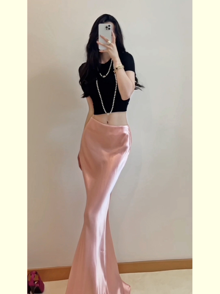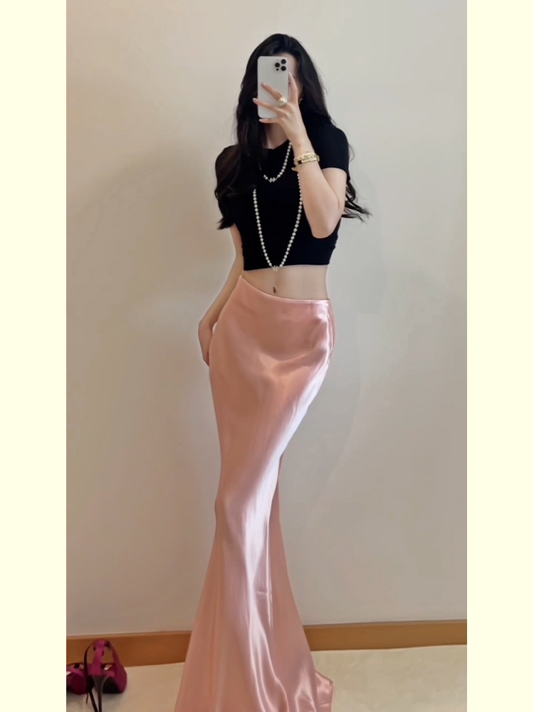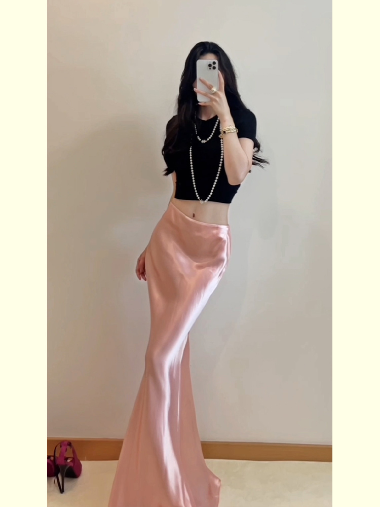高级感超好看醋酸半身裙女垂坠感包臀裙气质名媛a字显瘦半身长裙