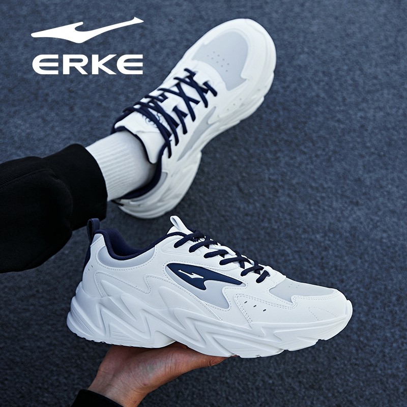鸿星尔克运动鞋男鞋2026冬季新款网面白色厚底轻便休闲减震跑步鞋