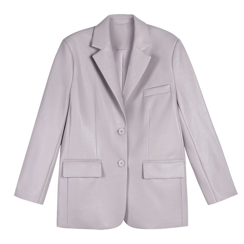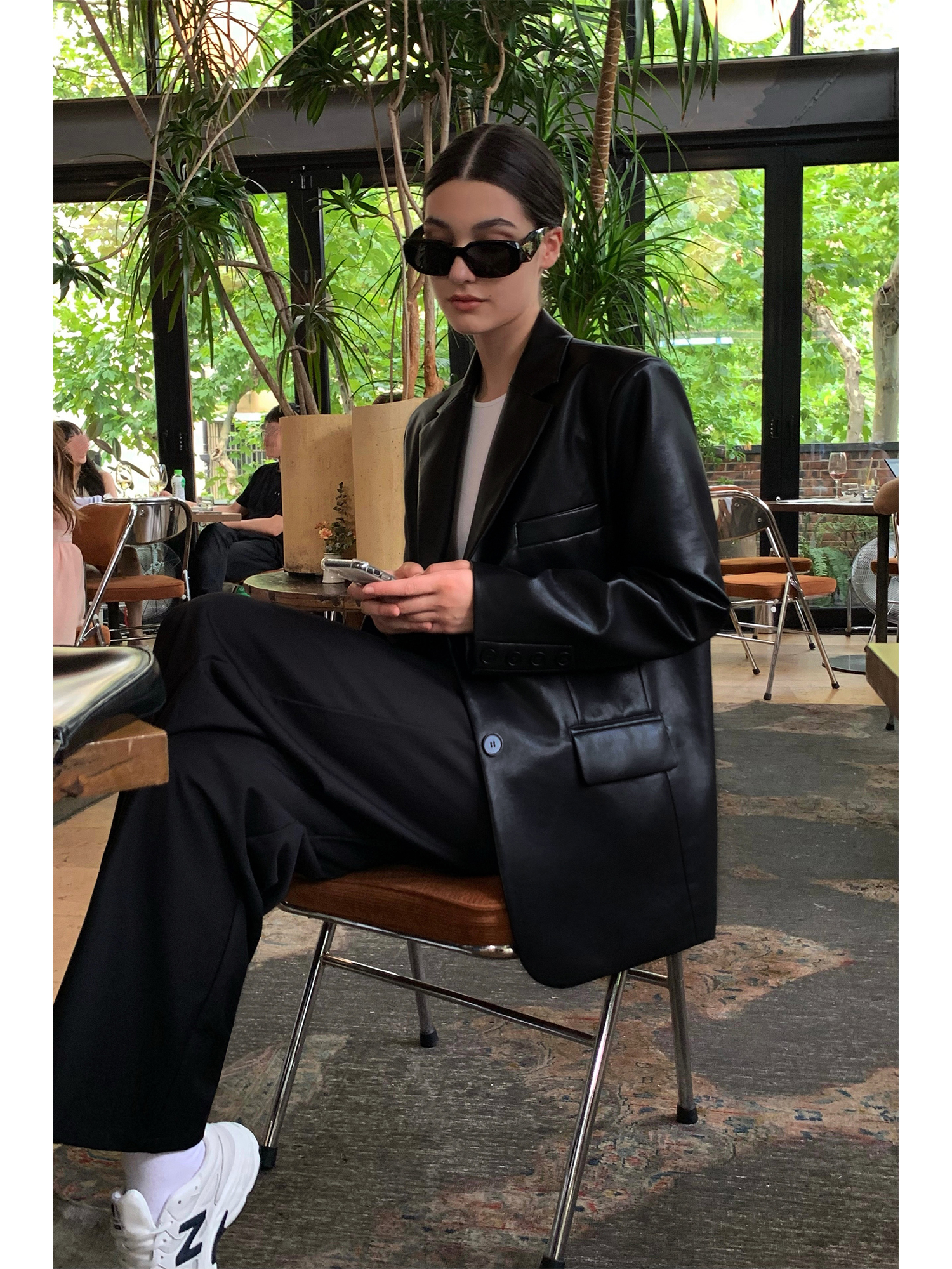NEVA HU黑色皮衣西装外套女宽松2025秋季新款PU皮高级感炸街西服