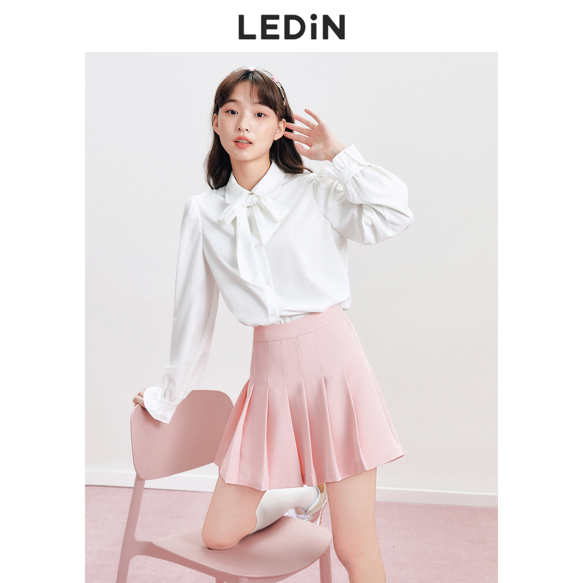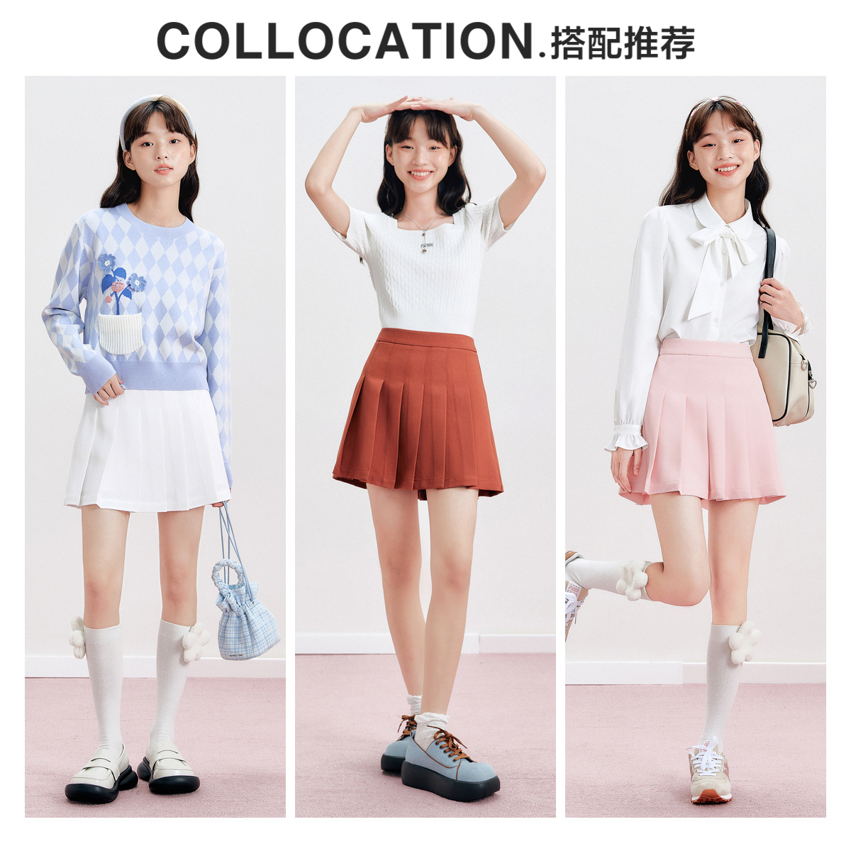 【清仓】乐町纯色学院风半裙夏半身裙女装元气白色A字百褶短裙