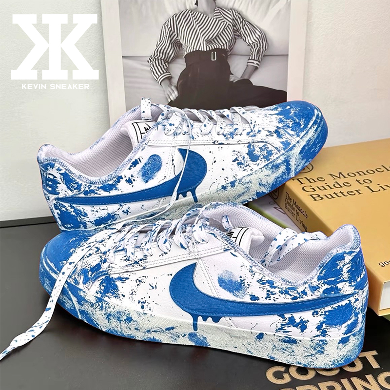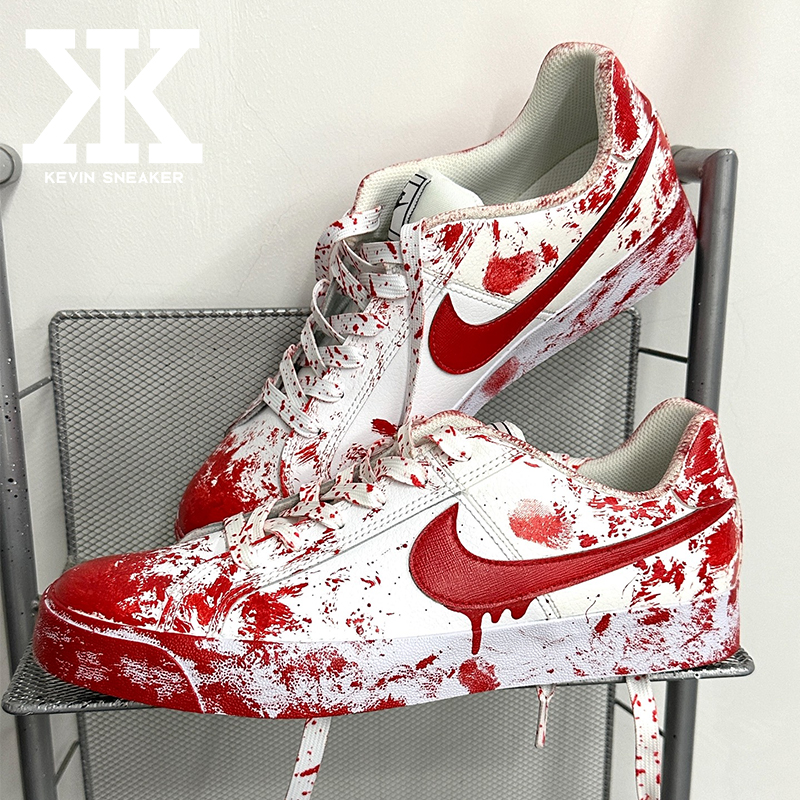球鞋定制Nike耐克Court Royale案发现场哥特风腥红血渍低帮板鞋