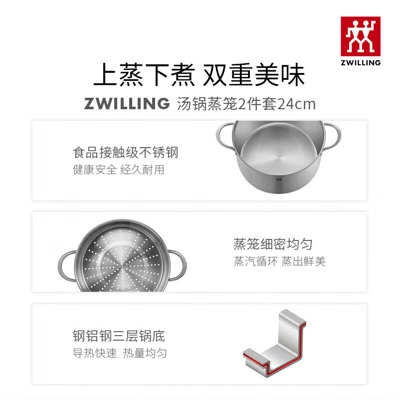 双立人锅具套装有钛蜂窝炒锅不锈钢煎锅汤锅组合锅具全套汤锅蒸笼