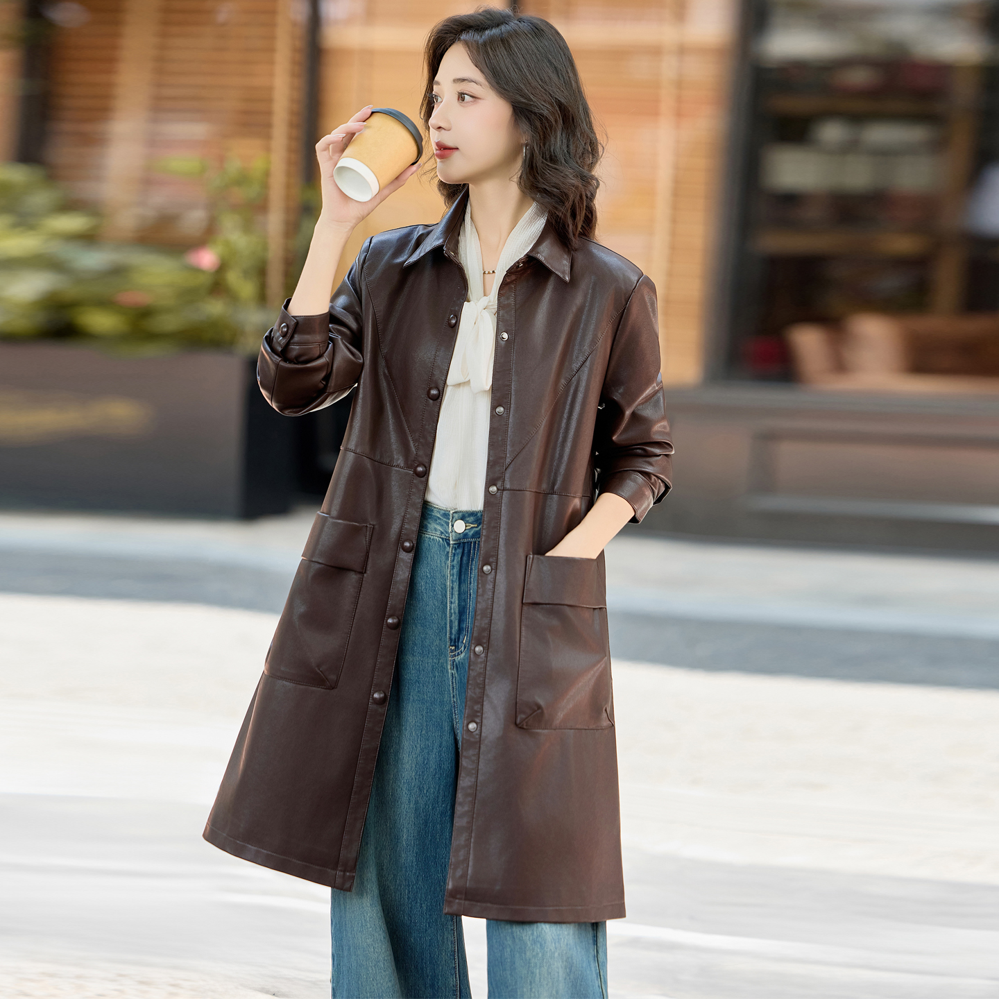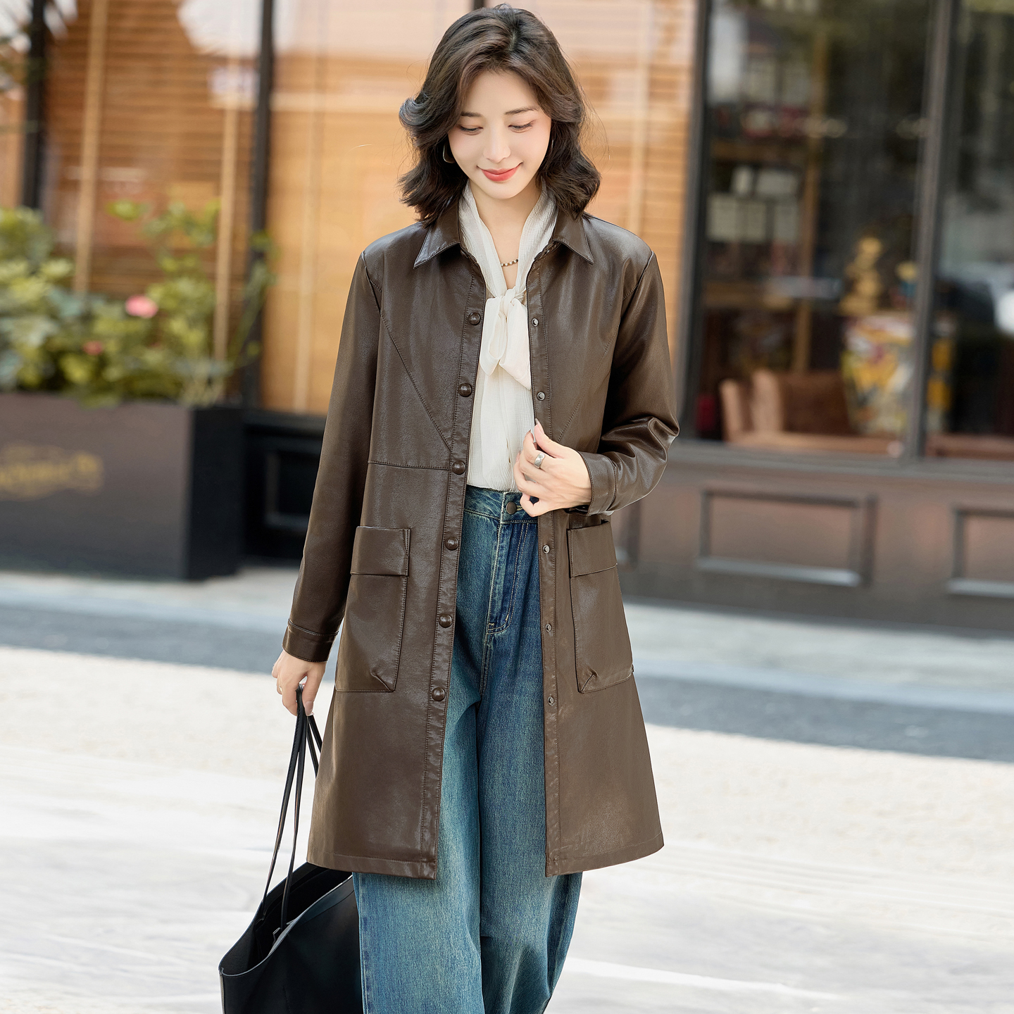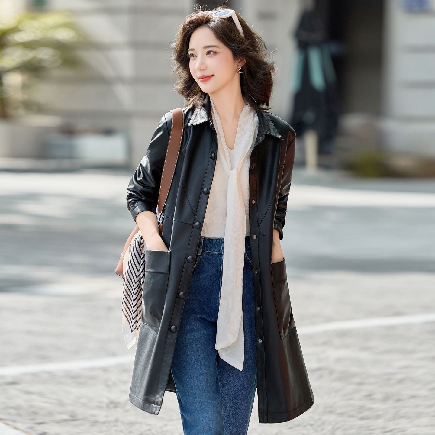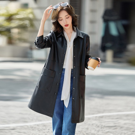 海宁真皮皮衣女绵羊皮中长款2025新款秋季休闲宽松大码皮风衣外套