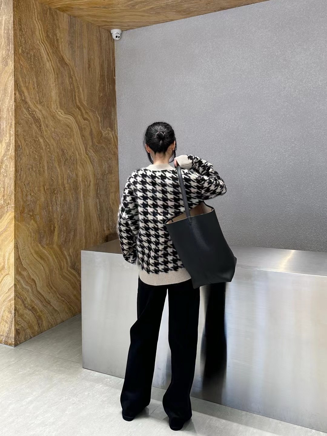 千鸟格纯羊毛针织开衫女毛衣外套V领小众设计针织衫短款羊毛衫