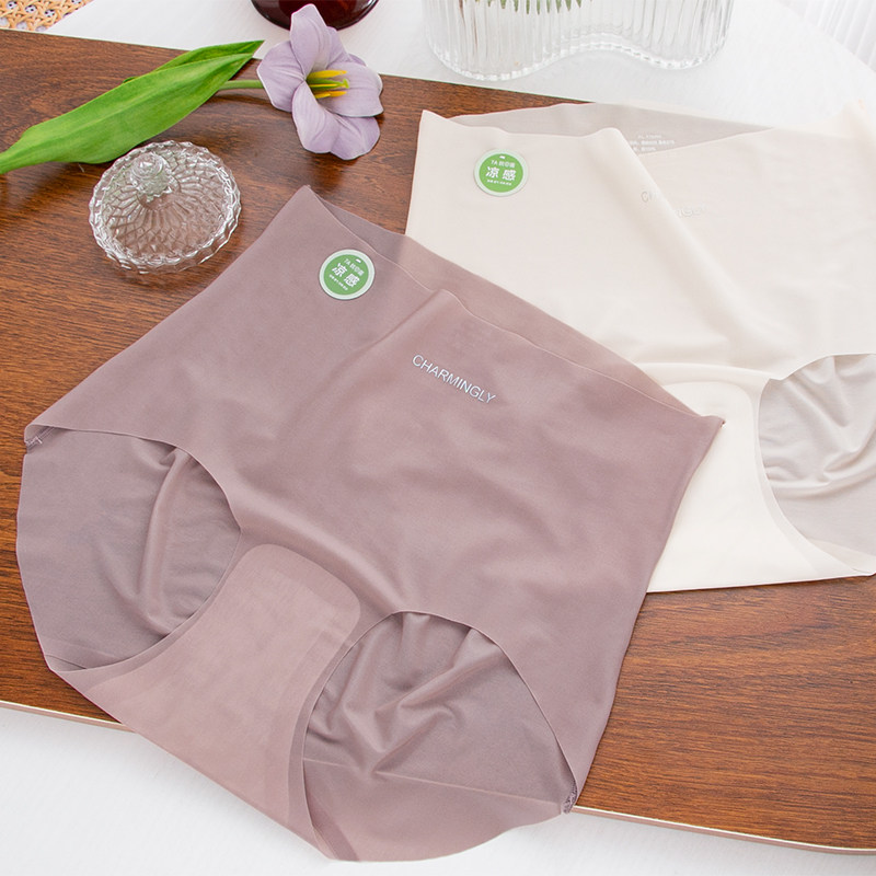 奶皮子~高腰超薄凉感冰丝大码内裤女胖MM200斤无痕蜜桃臀7A抗菌