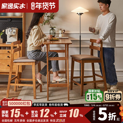 全实木吧桌吧椅组合家用樱桃木色餐桌高脚桌阳台休闲小吧台吧台桌