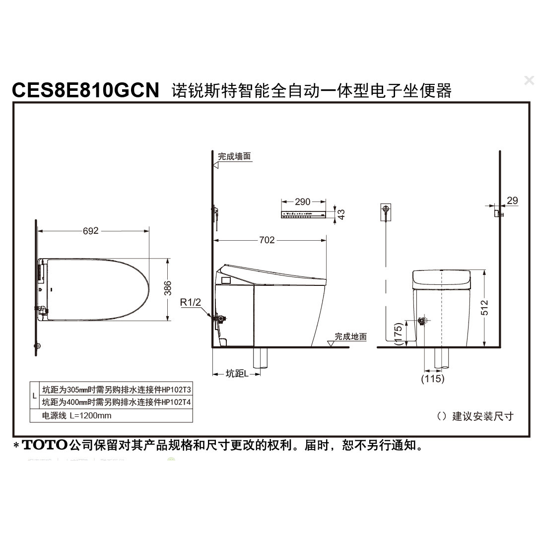 TOTO全自动马桶CES8E810GCN诺锐斯特智能一体型坐便器AS(01)