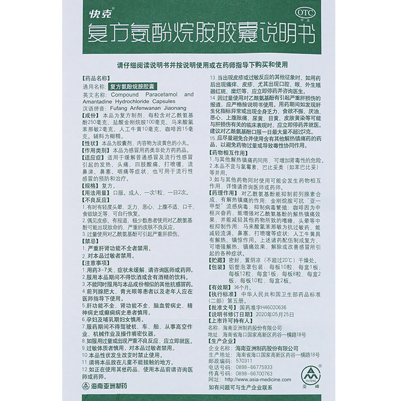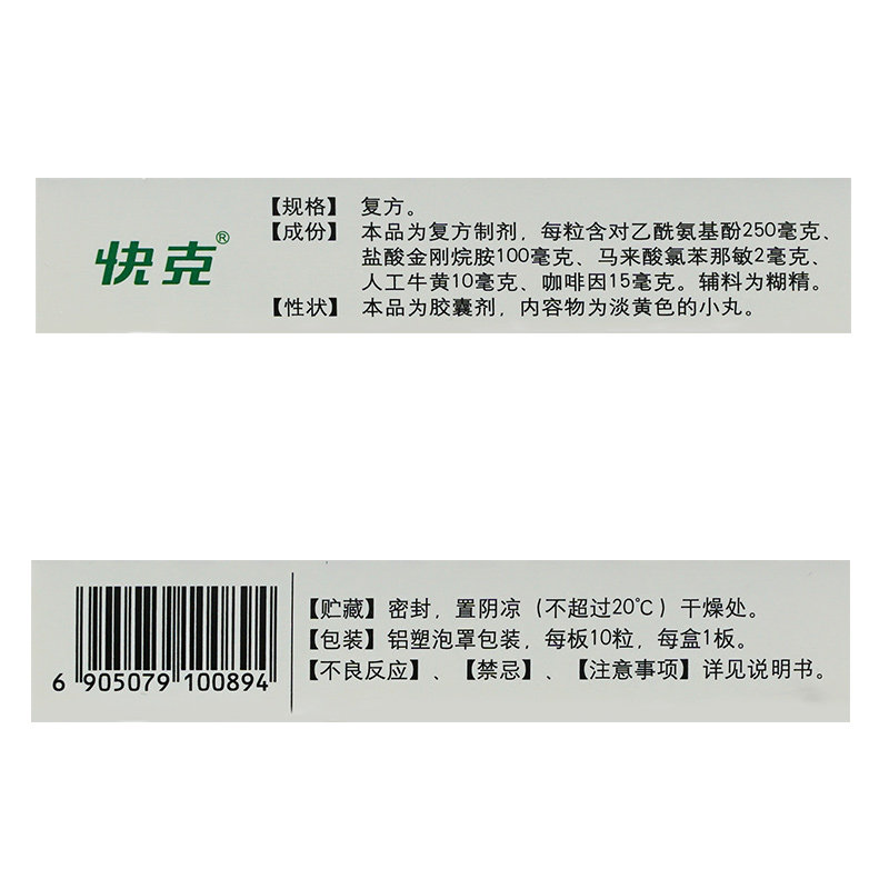 【快克】复方氨酚烷胺胶囊10粒/盒
