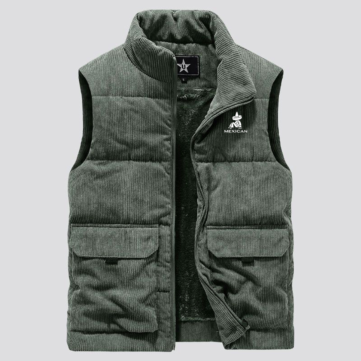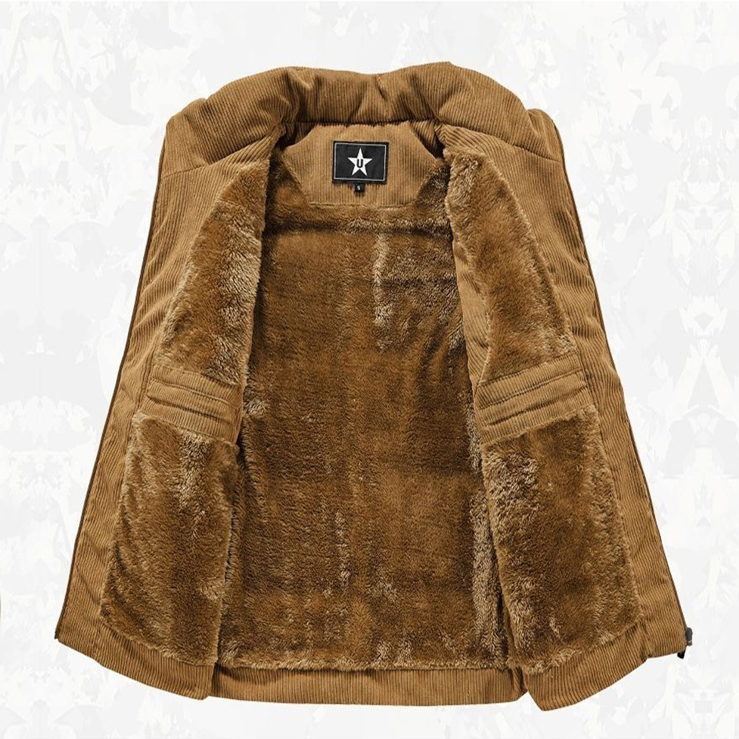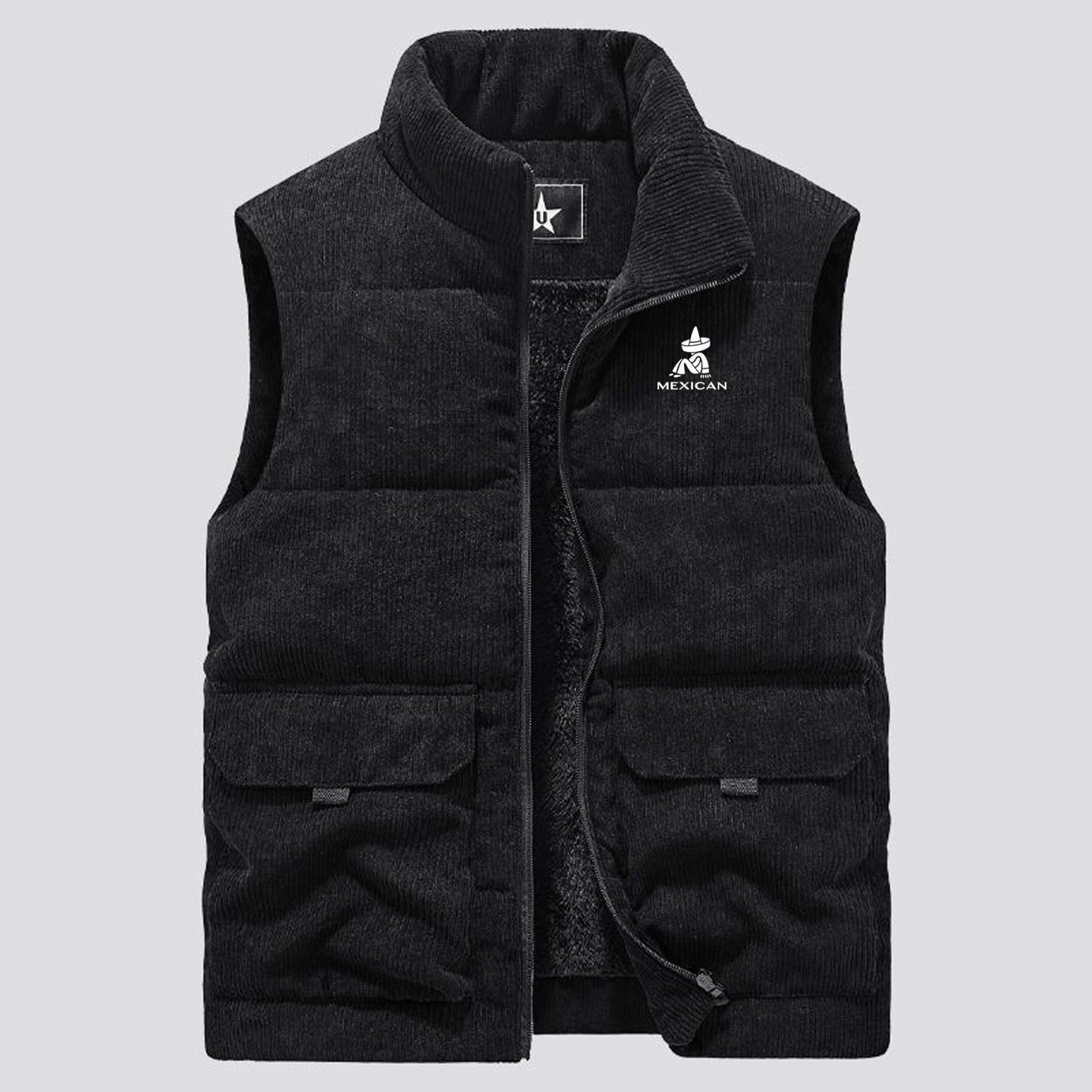 稻草人灯芯绒马甲男士冬季加绒加厚保暖背心大码工装立领马夹外套