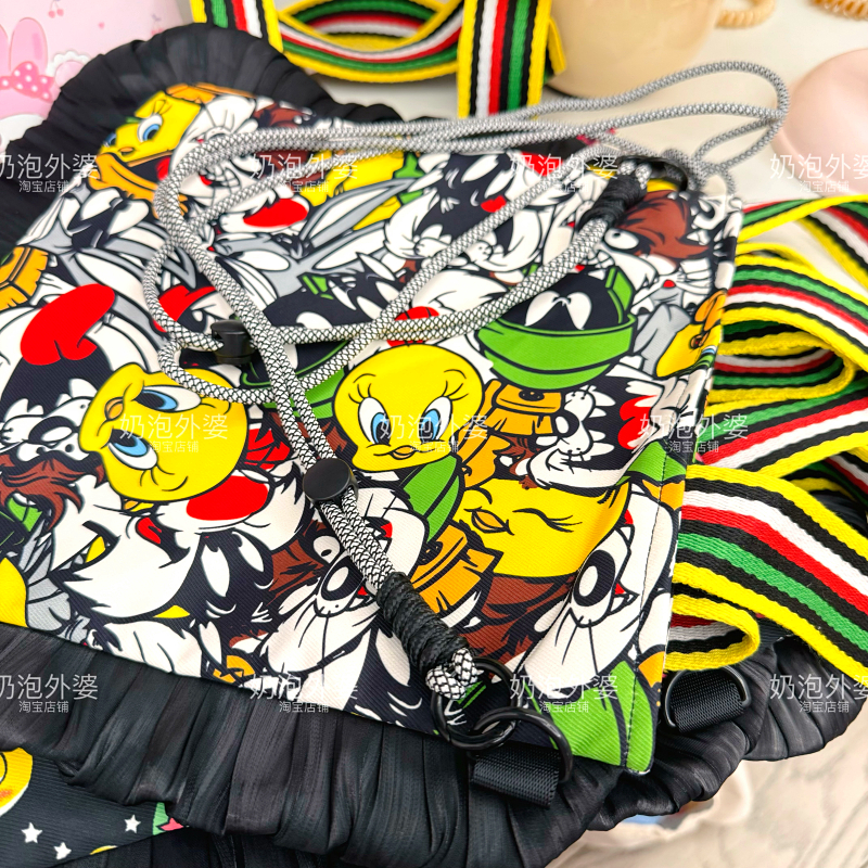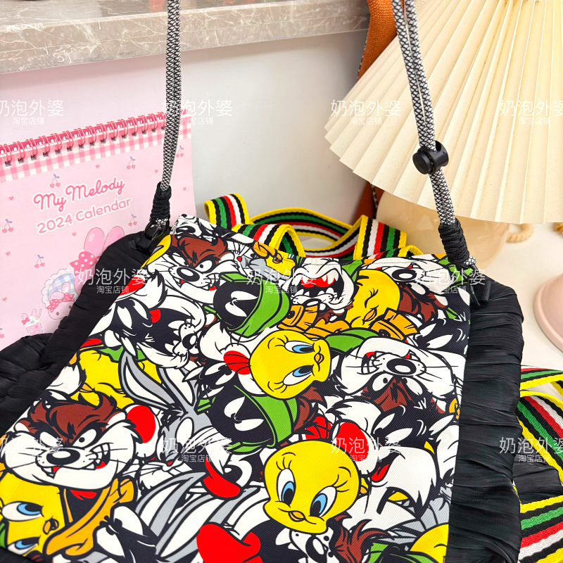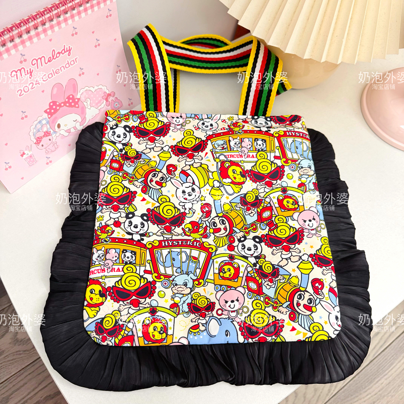 少女心黑色褶皱花边彩虹翠迪黑超动物园卡通印花女士单肩包斜挎包
