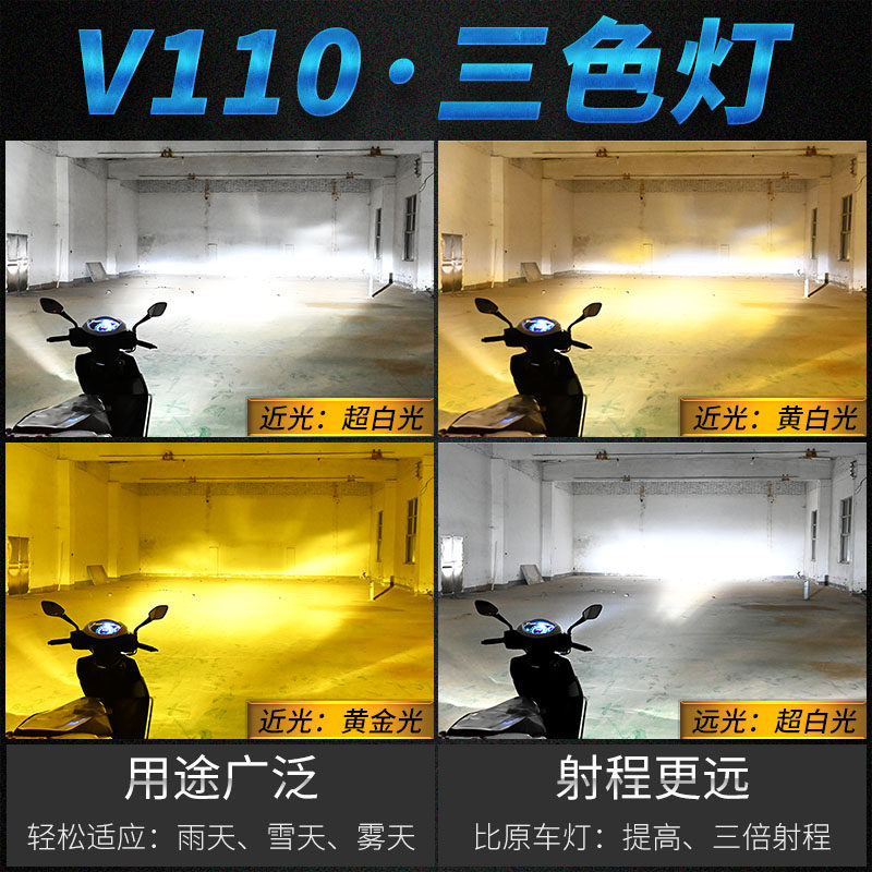 踏板摩托车灯电动车改装超亮强光 内置黄光H4双爪led大灯泡远近光