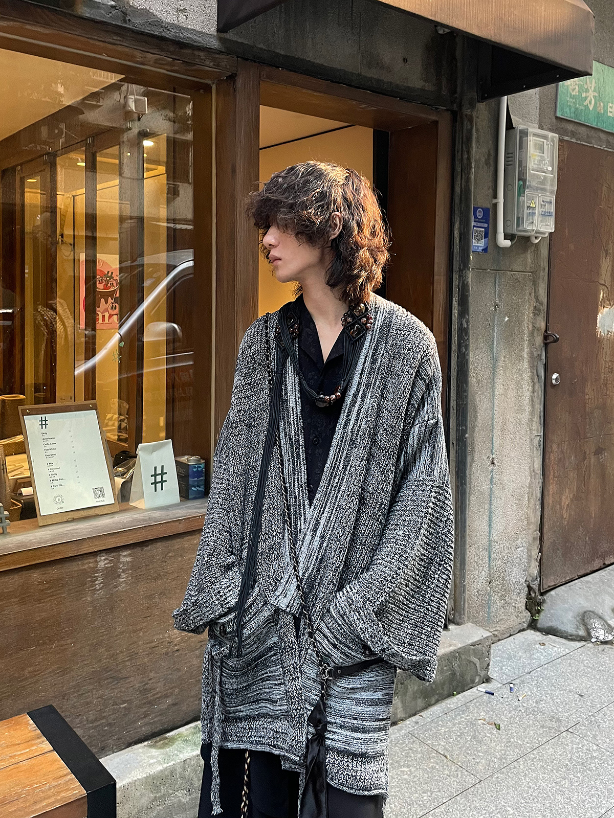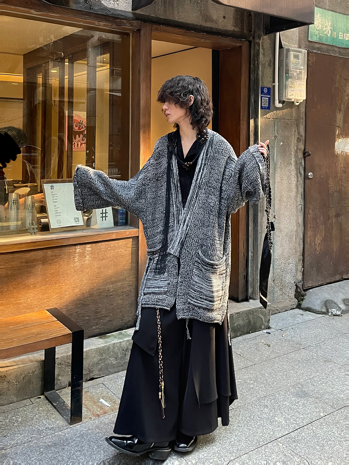 以休眠 复古日系秋冬小众道袍绑带设计感混色针织毛衣开衫外套