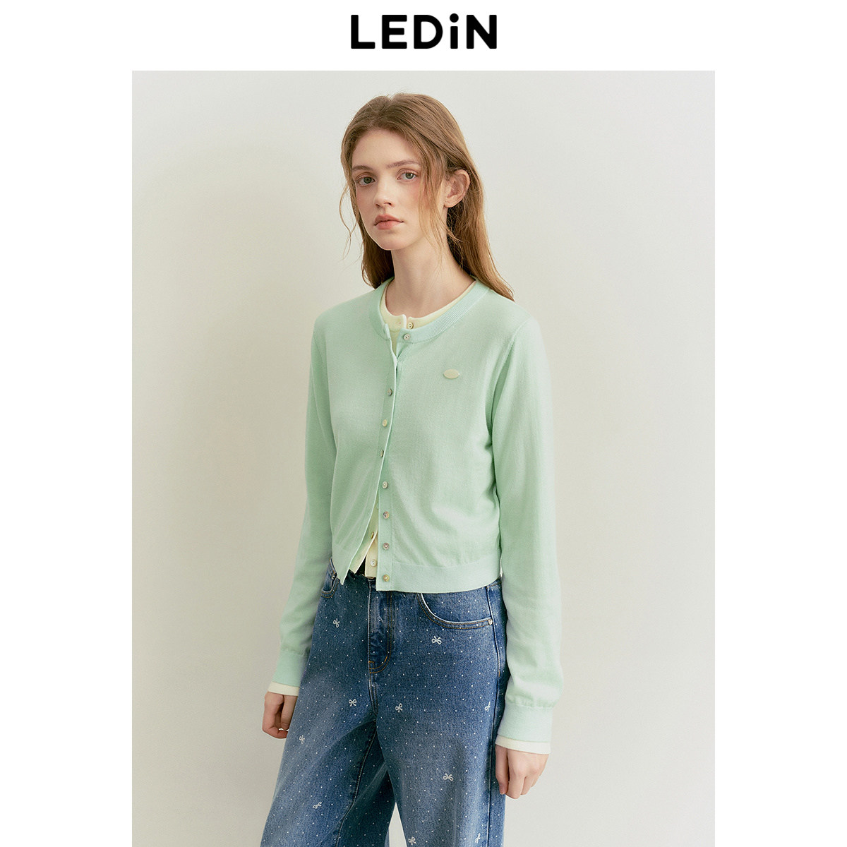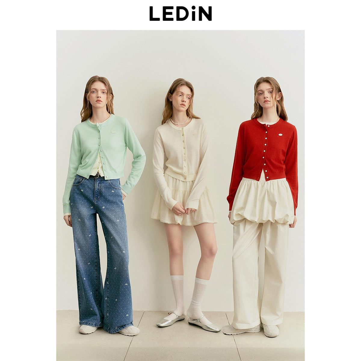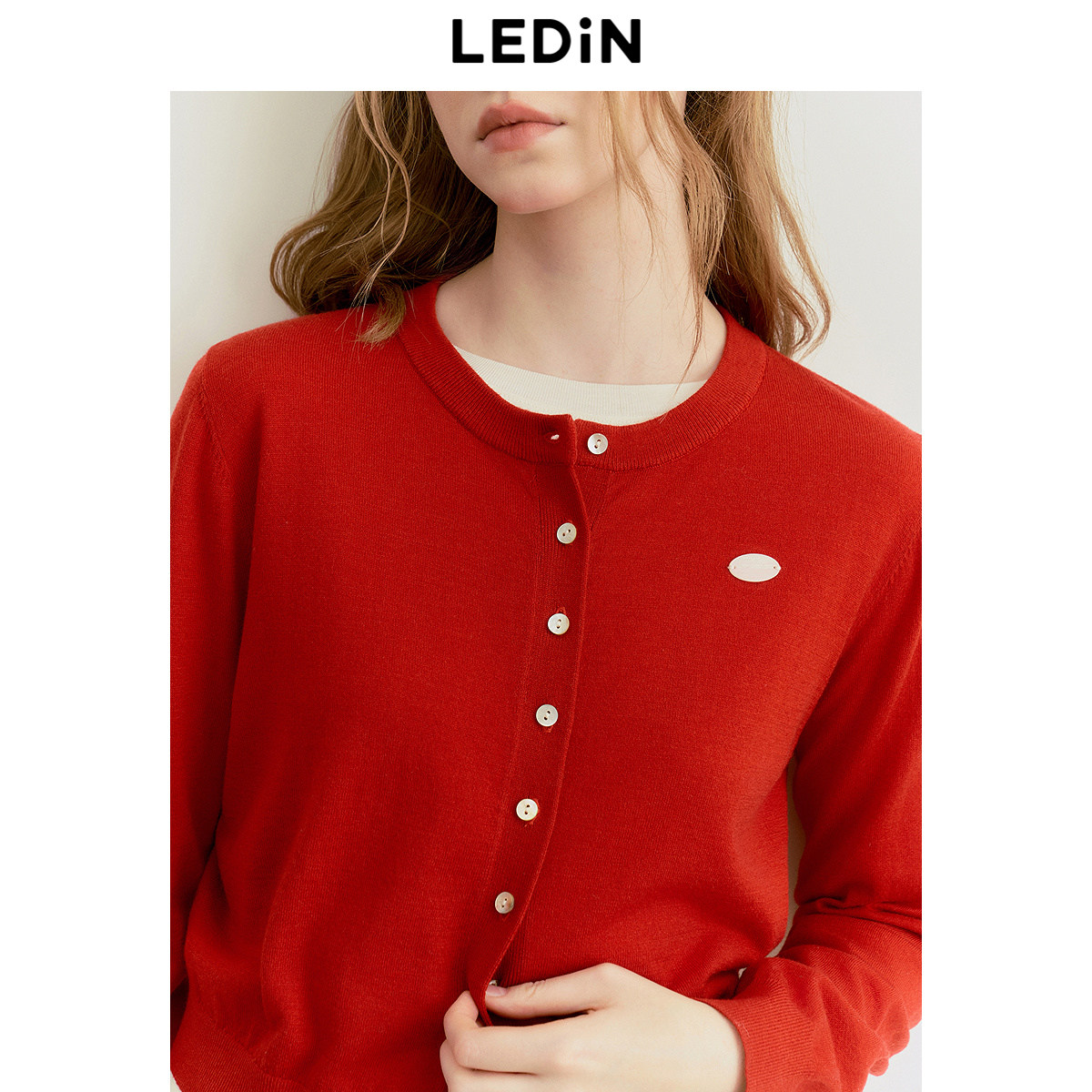乐町羊毛混纺线开衫2025年春季新款简约本命年红色针织衫毛衣外套