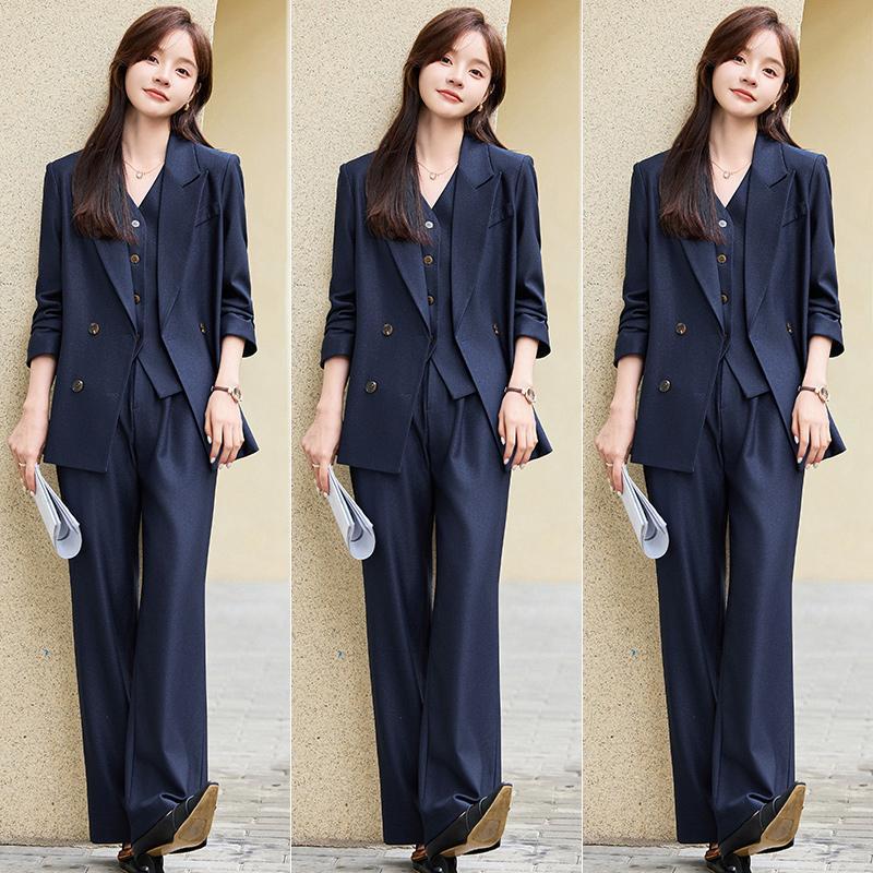 杏色职业西装套装女春秋季新款高级感通勤面试正装西服马甲三件套
