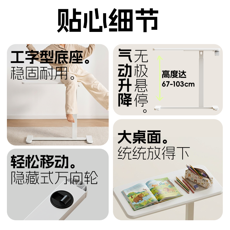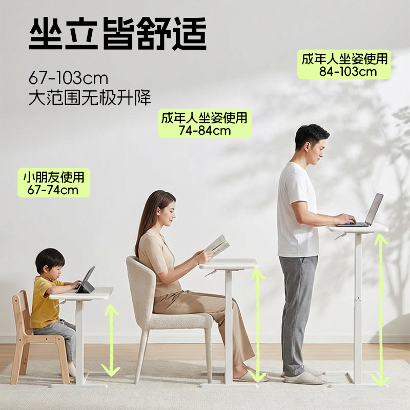 久正V-MOUNTS床边桌气动升降桌可移动升降桌沙发边几笔记本桌小桌