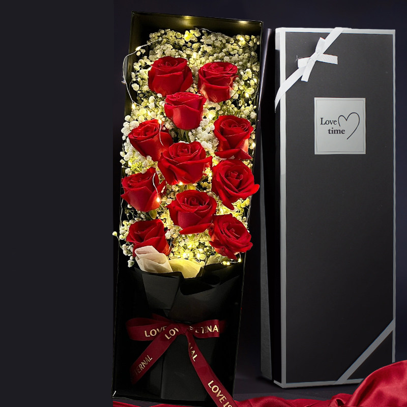 情人节精致礼盒玫瑰花束鲜花同城