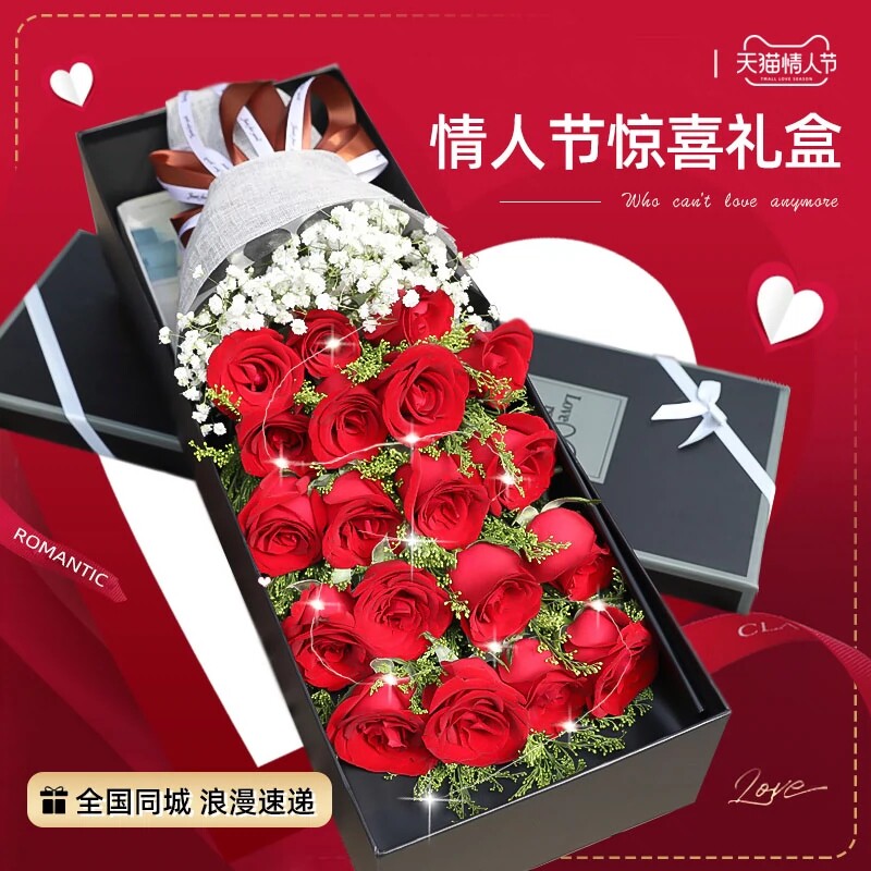 礼盒鲜花速递同城配送女友红玫瑰花束生日成都西安重庆广州全国店