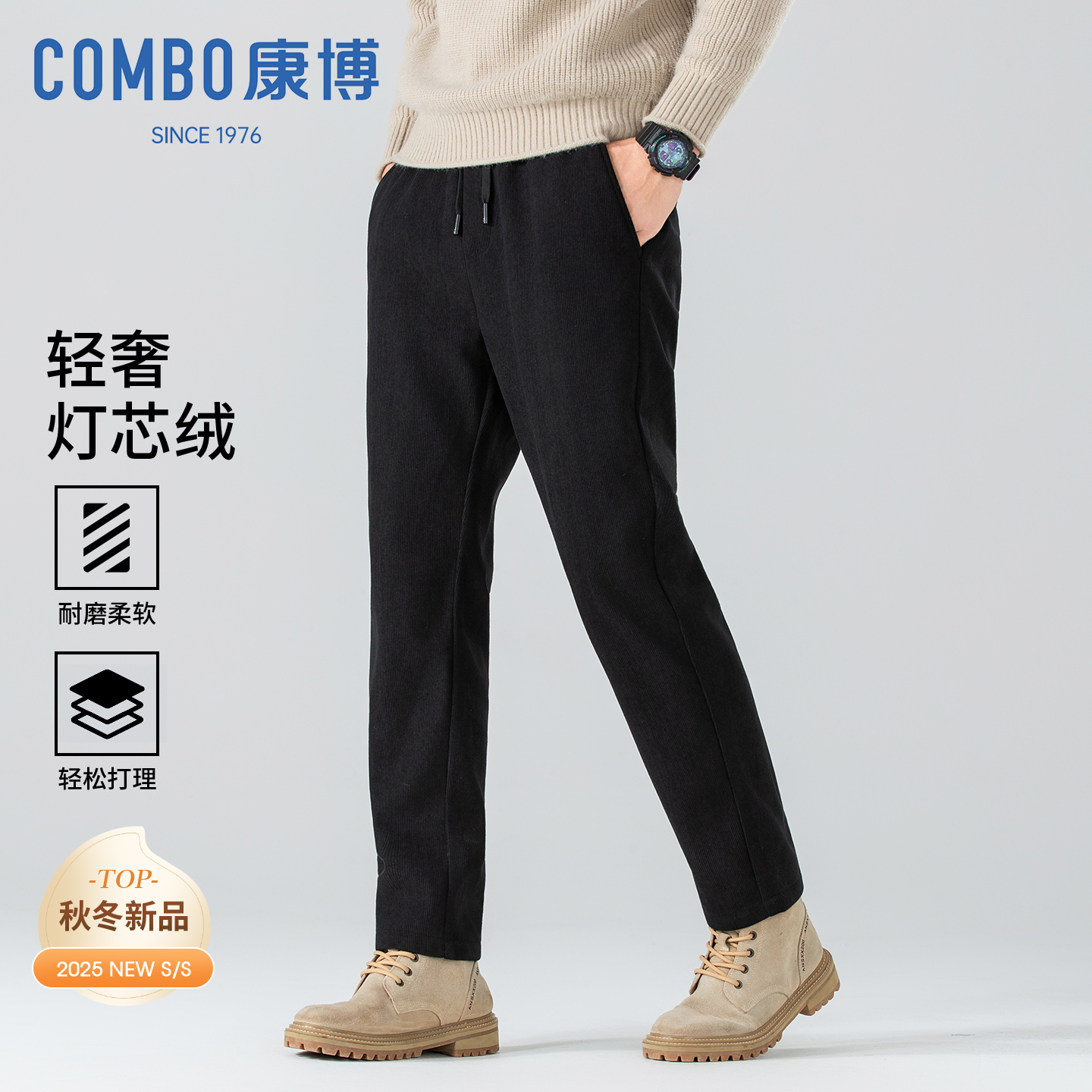 combo康博 灯芯绒休闲裤男士2025秋冬新款纯色松紧腰直筒宽松长裤
