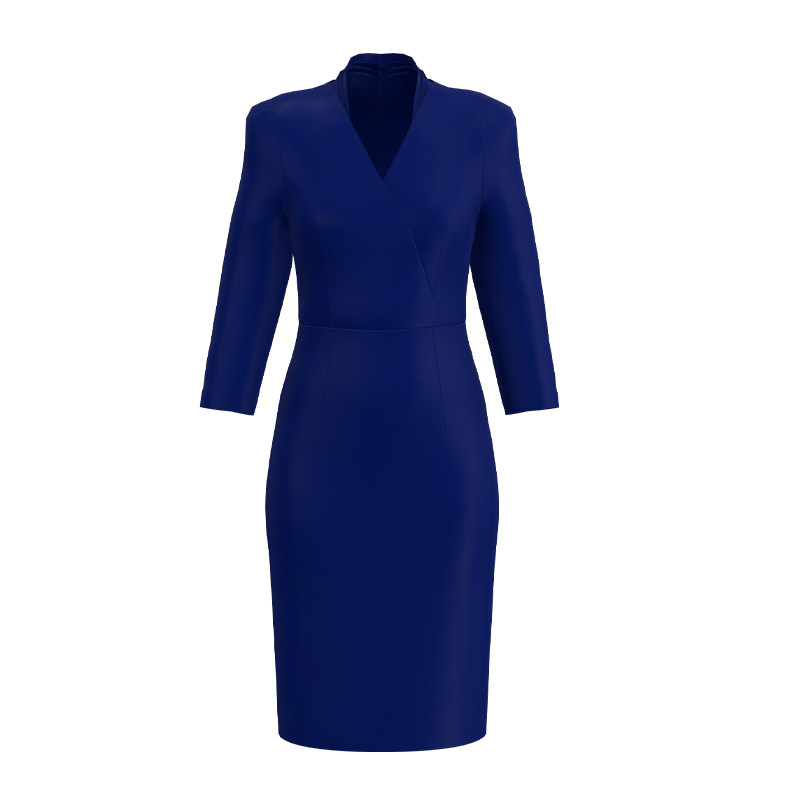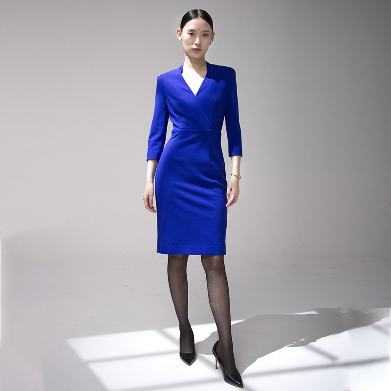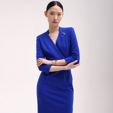 BRANDBYMEI职场精英女性基本款干练合体剪裁克莱因蓝七分袖连衣裙