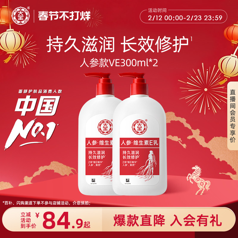 大宝维生素e乳300ml人参精华舒缓修护面霜补水保湿身体乳液旗舰店