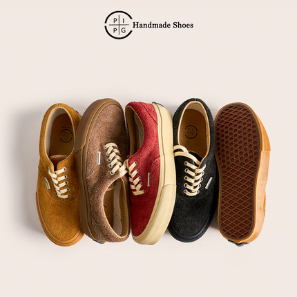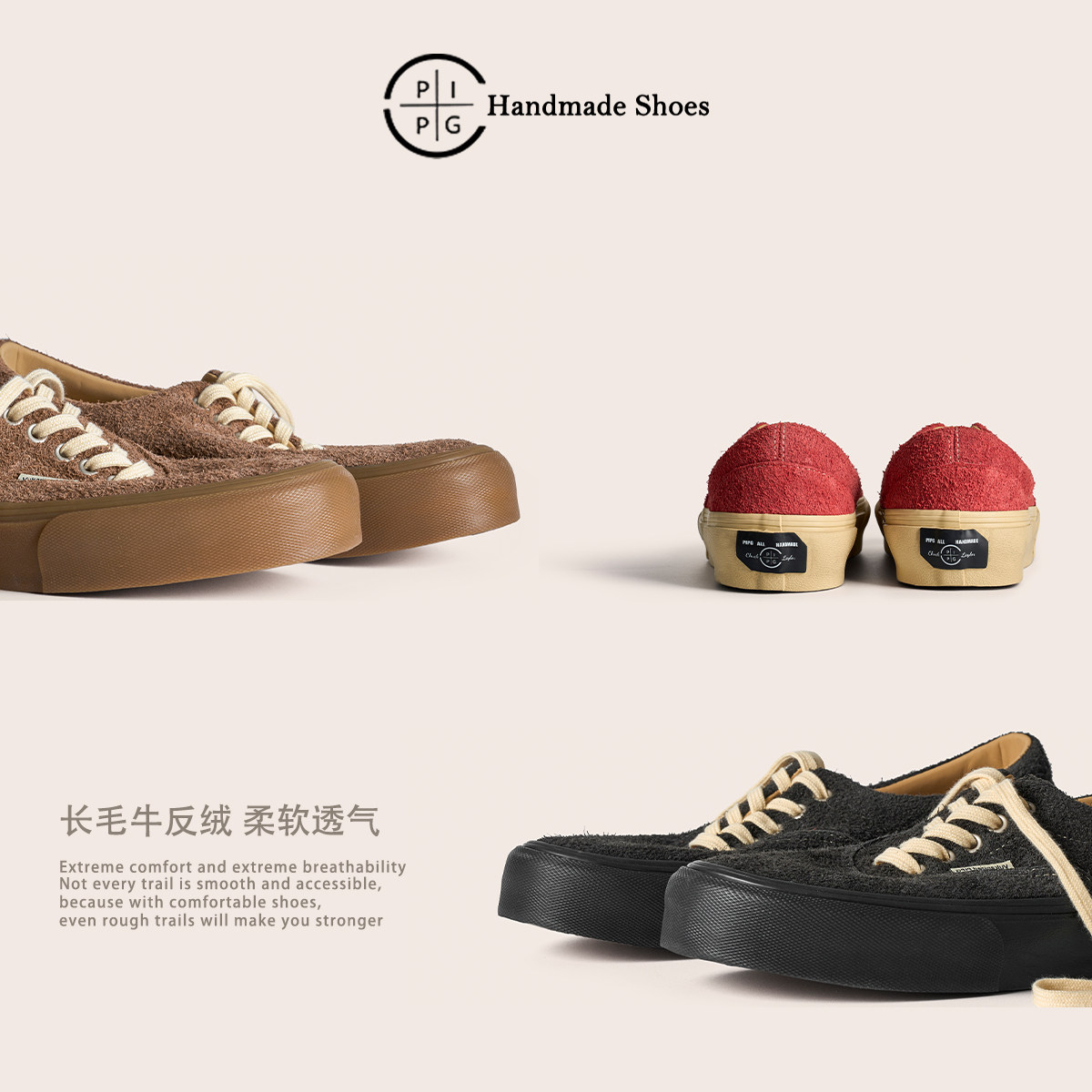 PIPG复古翻毛皮低帮帆布鞋男女 硫化鞋反绒休闲厚底增高板鞋日系