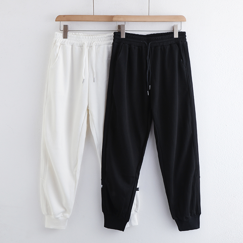 惠衣阁秋女棉质松紧腰高腰运动裤韩版宽松休闲裤九分裤束脚裤卫裤