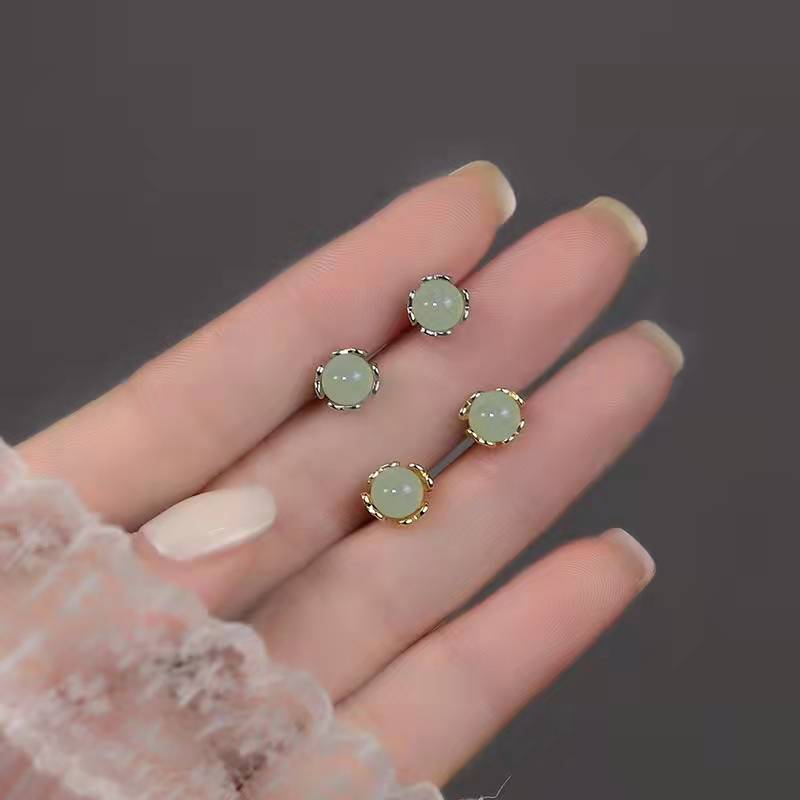 2022年新款925纯银和田玉耳钉女