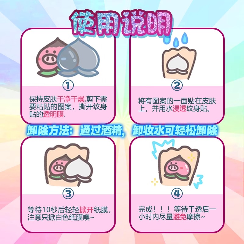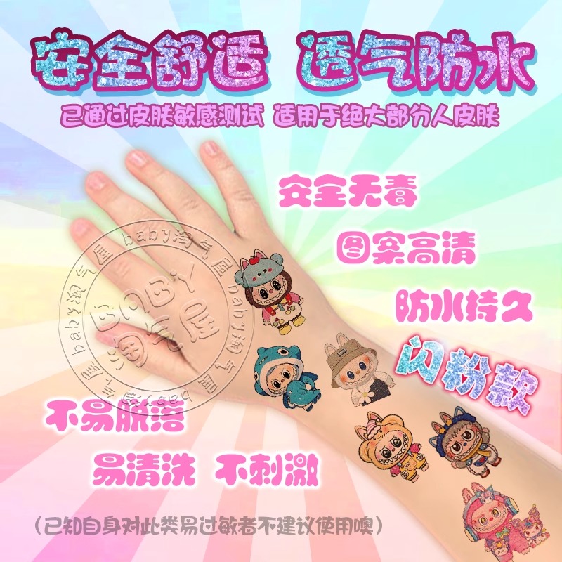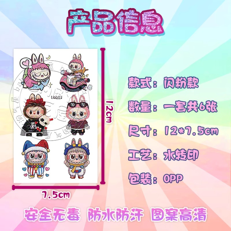 小兔子系列闪粉纹身贴贴纸周边卡通男女儿童可爱防水可洗玩具贴画